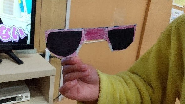 「じゃーん!」と手作りサングラスを付けていました!
