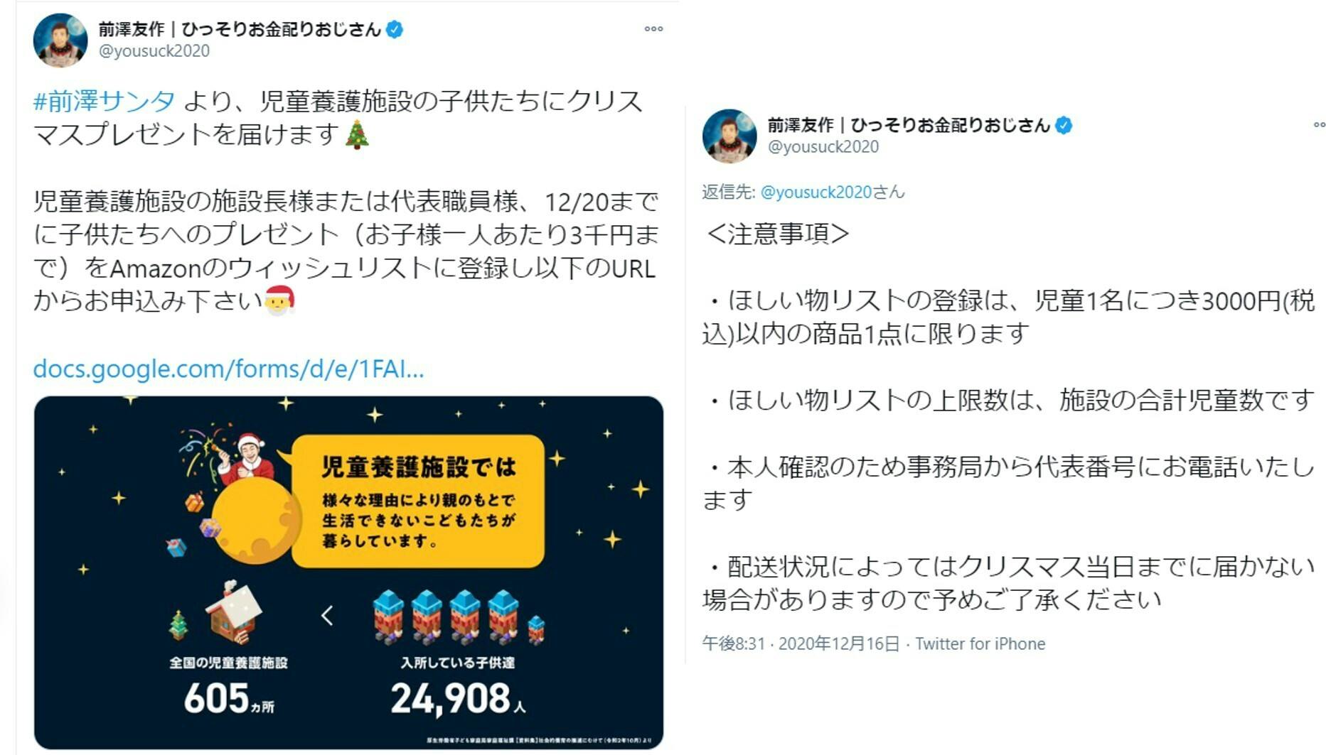 前澤サンタ、スタッフの方、声を届けてくれた方、配送業者さん、