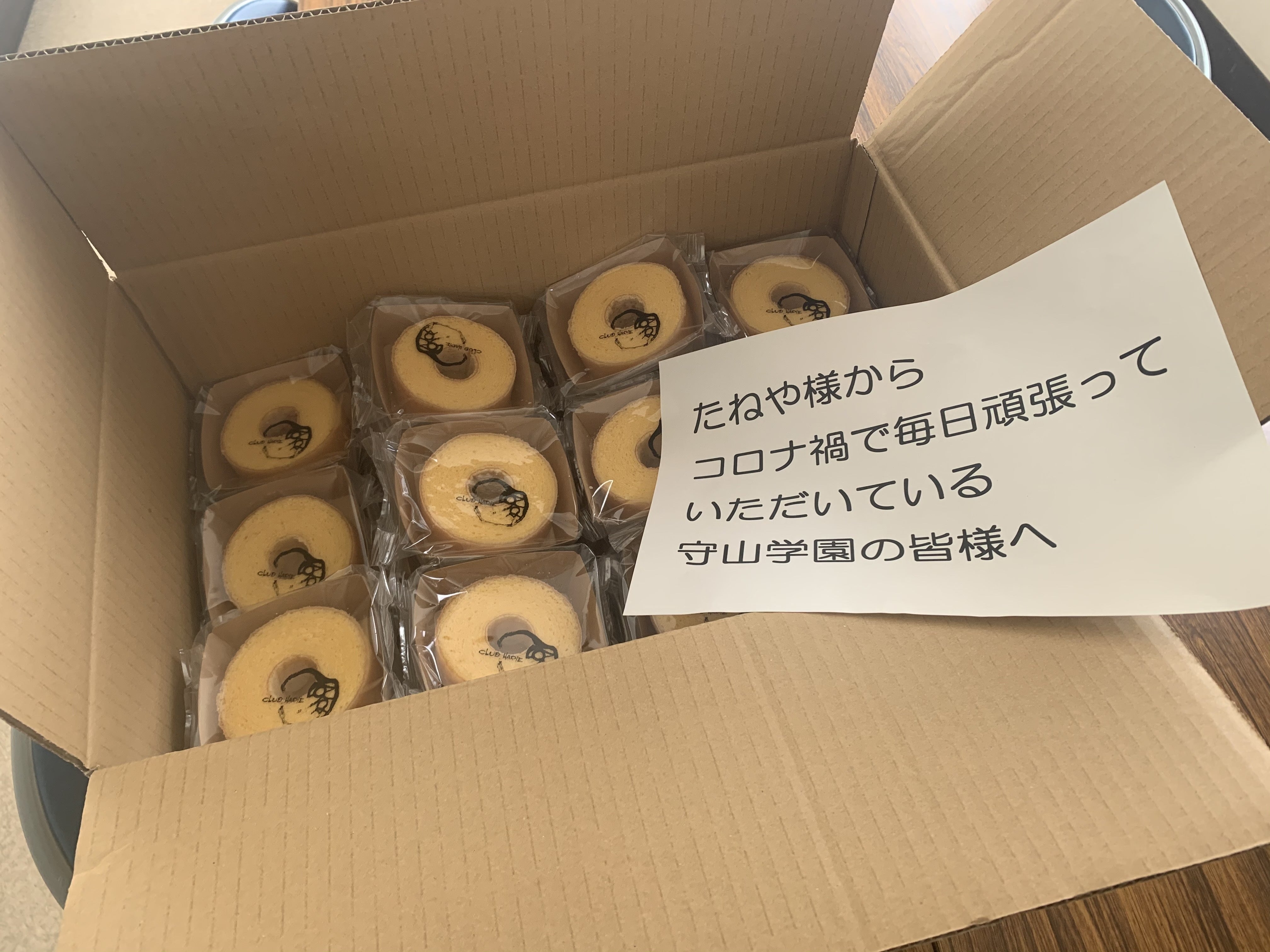 かわいいミニバームクーヘンを学園に届けてくださいました!!
