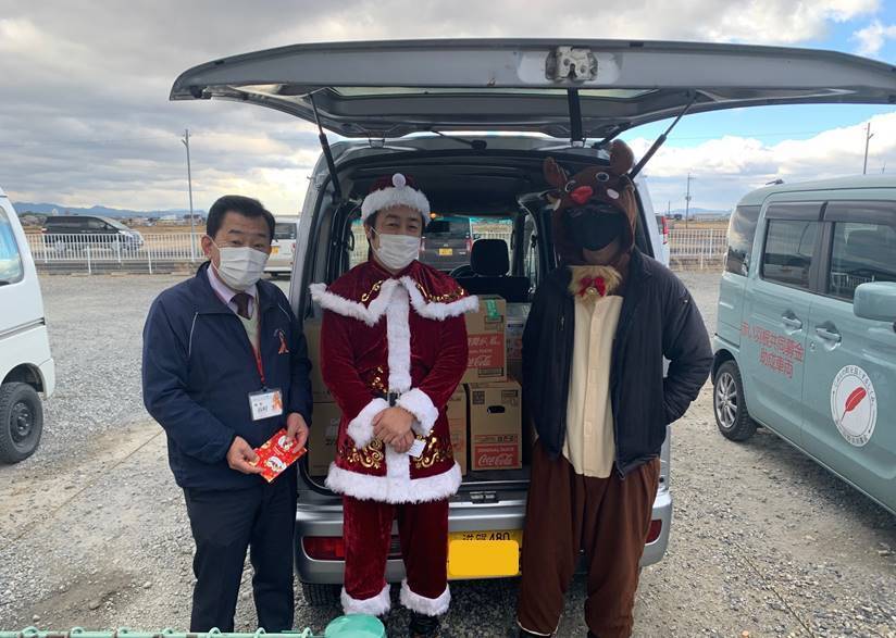 たくさんのお菓子を車に乗せ、やってきたサンタさんとトナカイさん(^^)
