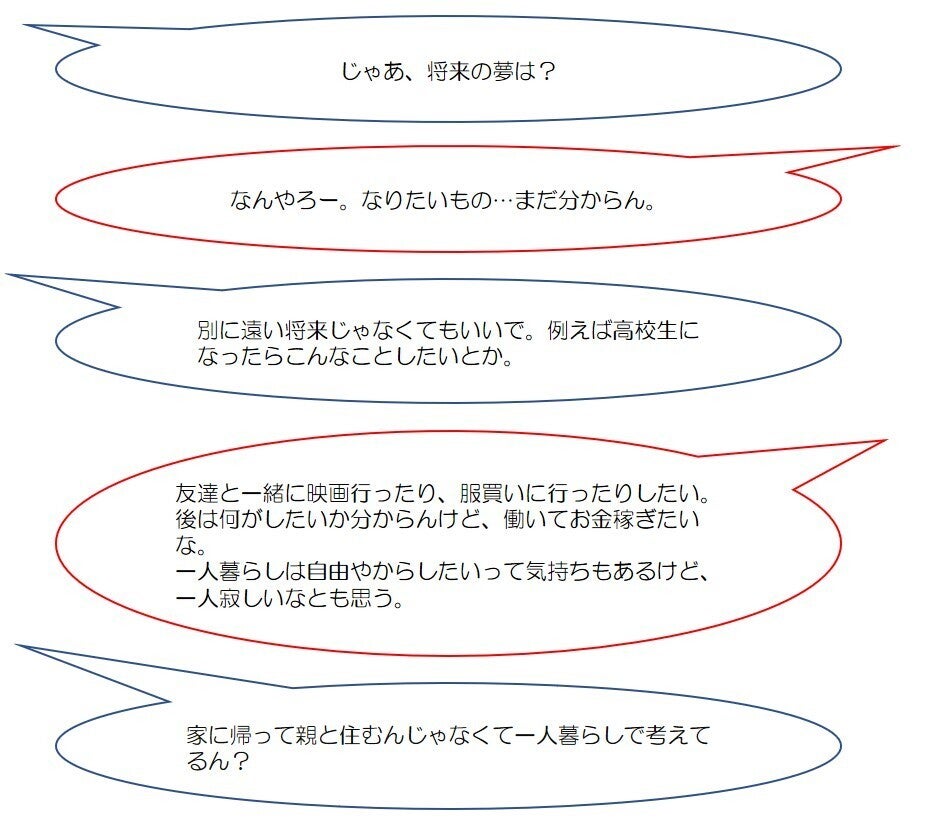 ※個人が特定できないよう、家庭の情報に関しては、少し変えています。話してくれた思いについては、そのまま載せております。