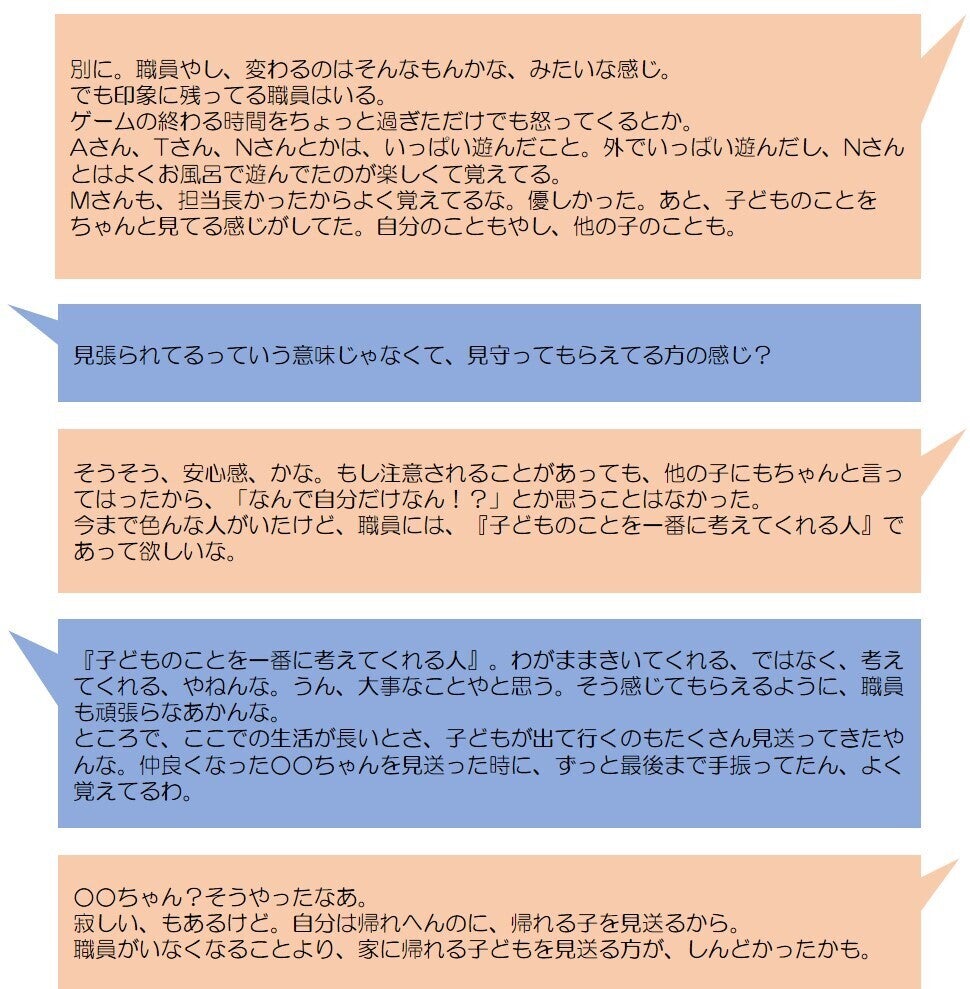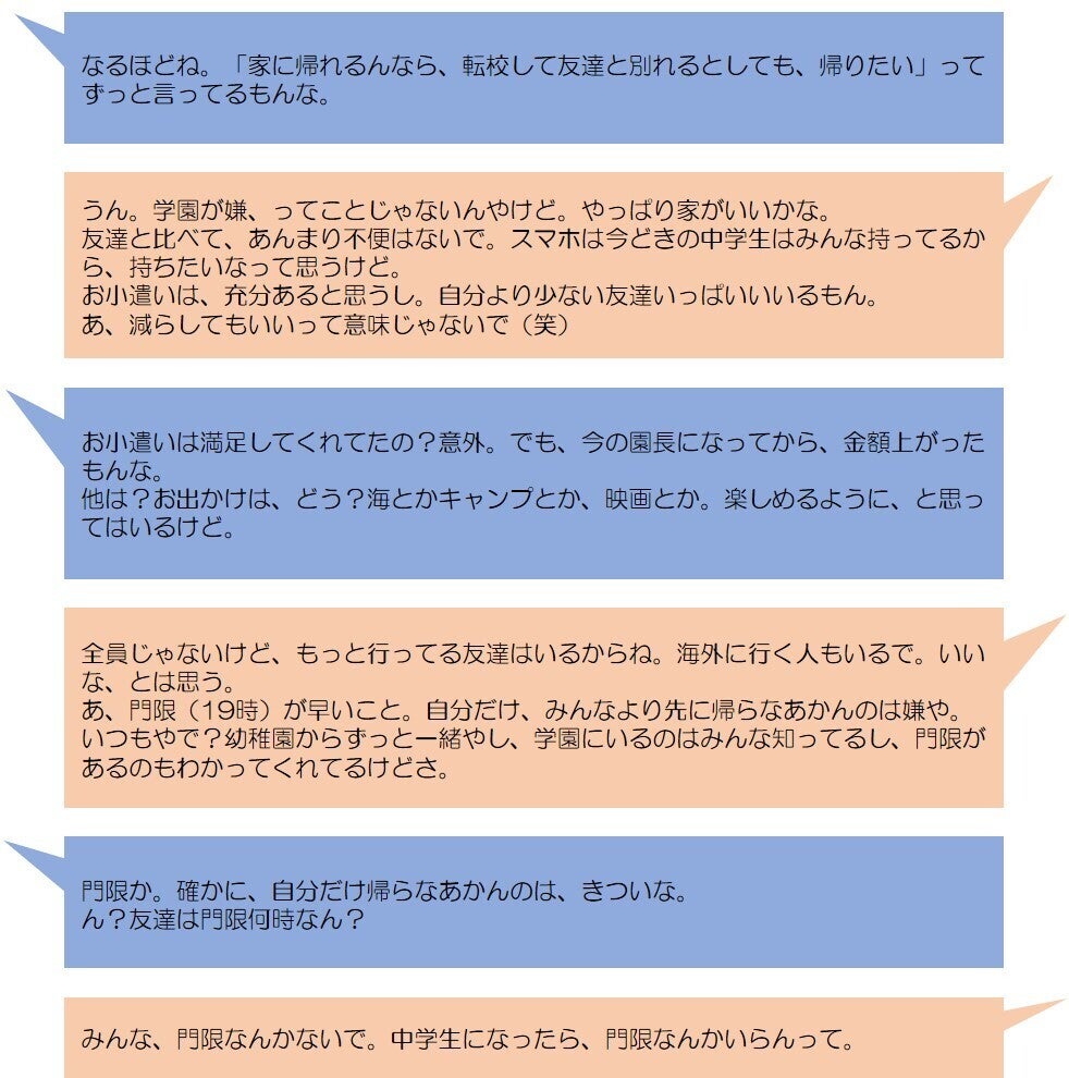 ※子ども達、それぞれに事情が違います。全員が同じ思いでいるわけではなく、あくまで一人の子どもの経験・思いであることを踏まえて、お読みください。