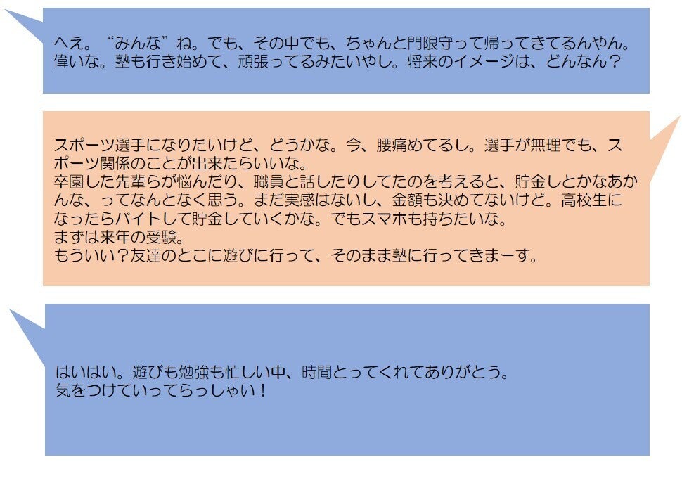 ※個人が特定できないよう、情報に関しては、少し変えています。話してくれた思いについては、そのまま載せております。