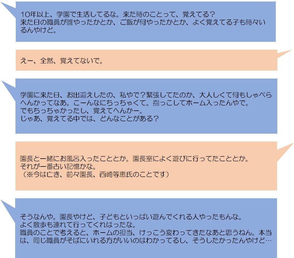 学園での生活、職員やお友達とのことなどなど…