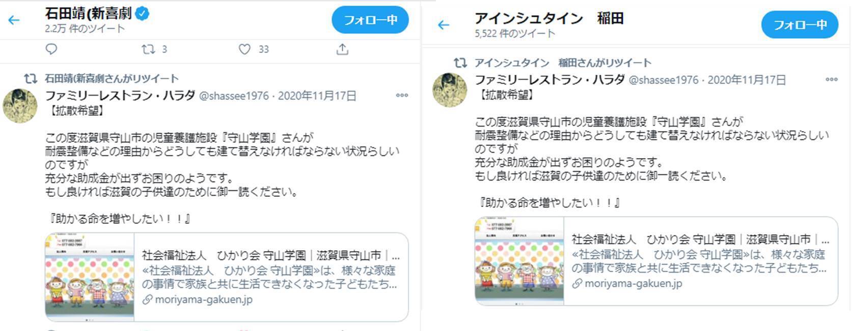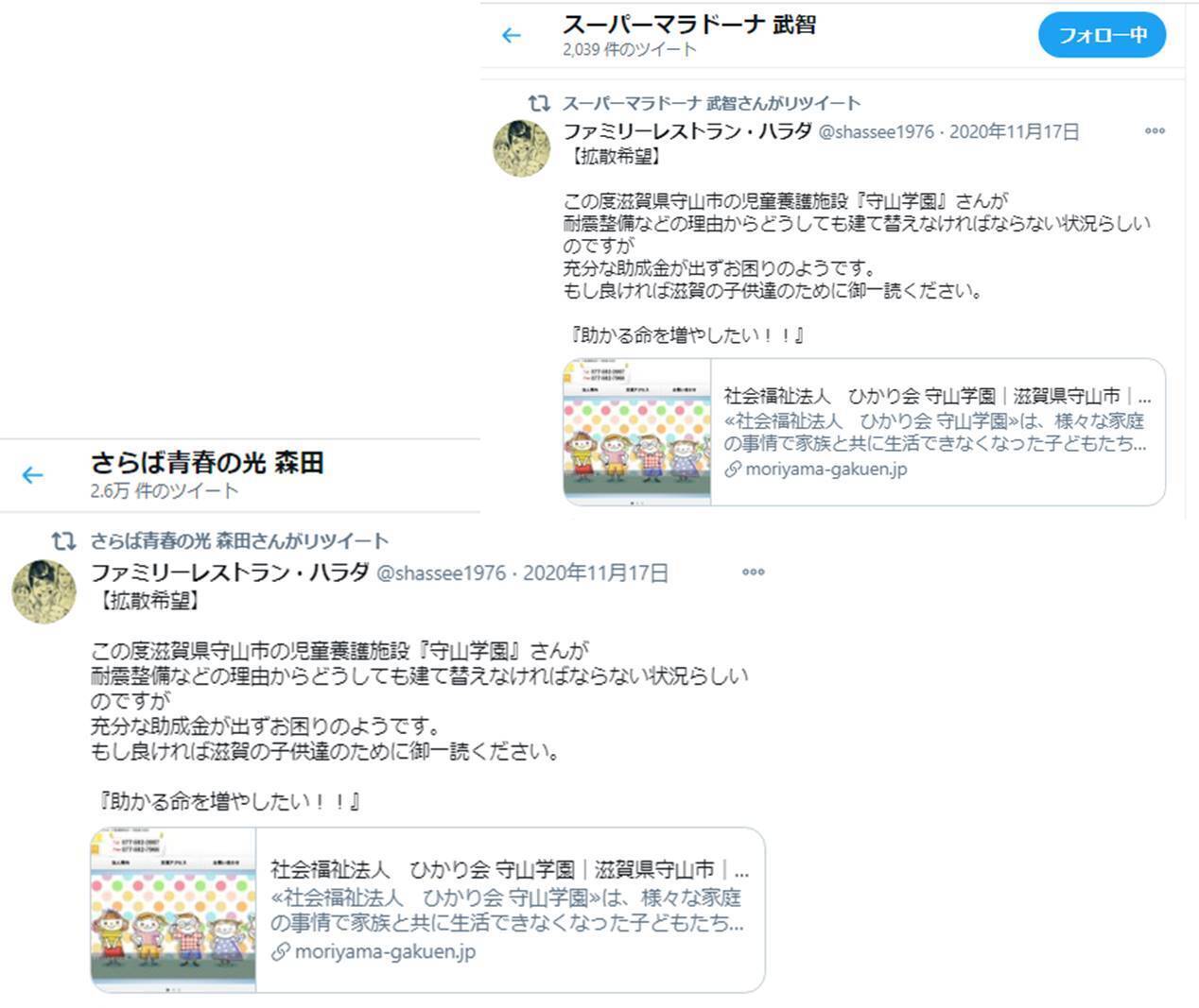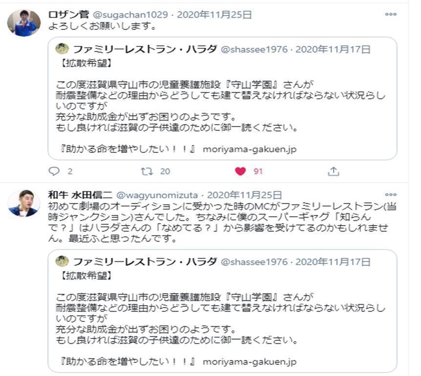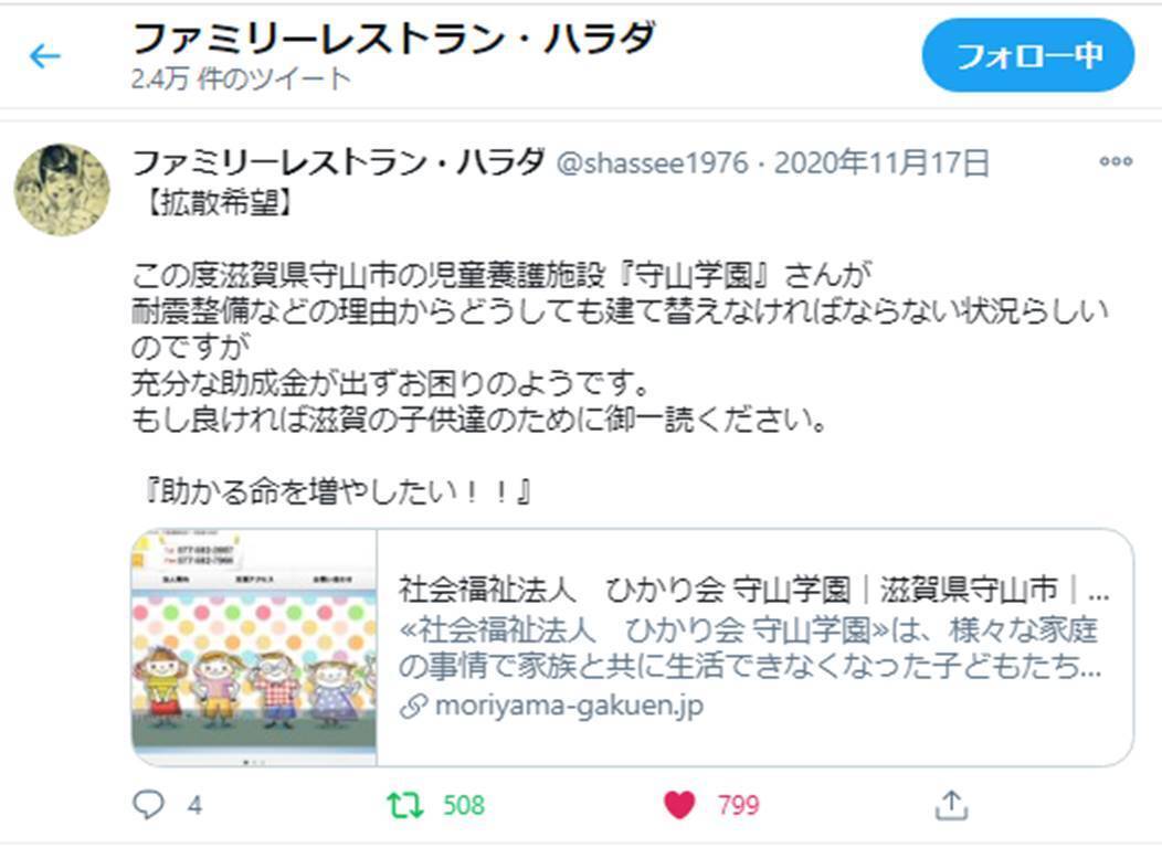 滋賀県住みます芸人のファミリーレストランハラダさんのツイートがきっかけでたくさんの方に声が届きました!!