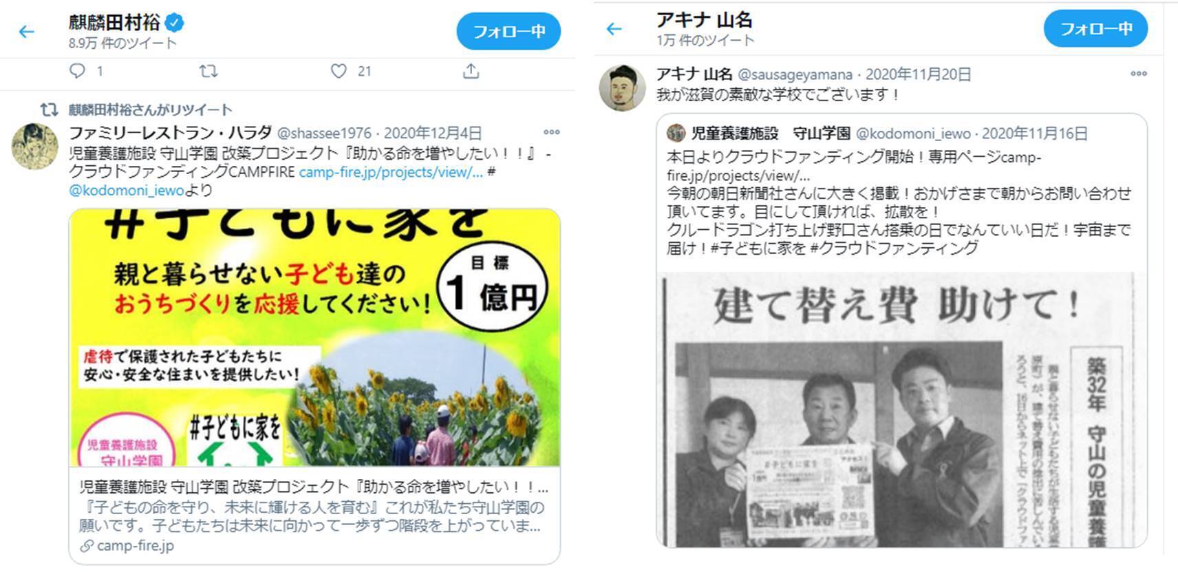 また、多くの人に情報が届くため、認知してくれる人、支援を検討してくれる人が現れます。