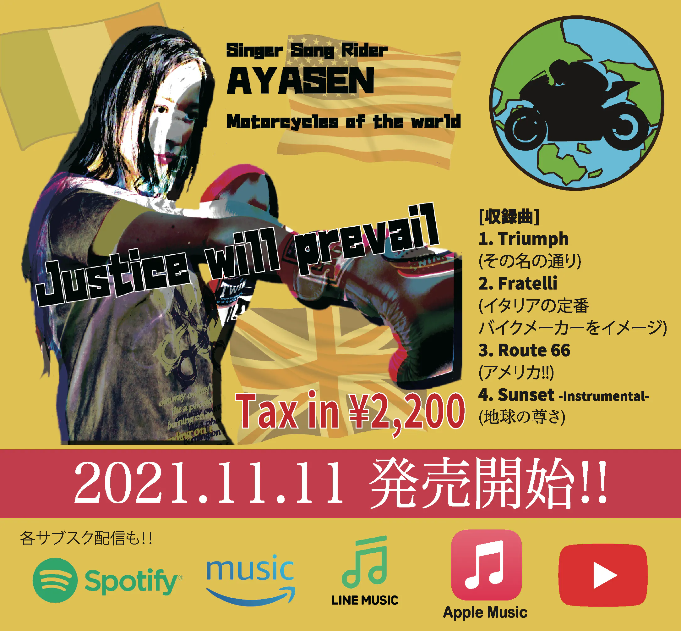 I'm a singer song writer Rider, AYASEN. I appear on the motorcycle TV show. 2 of my songs have been used as ending theme song of the TV show. I've performed in some countries.