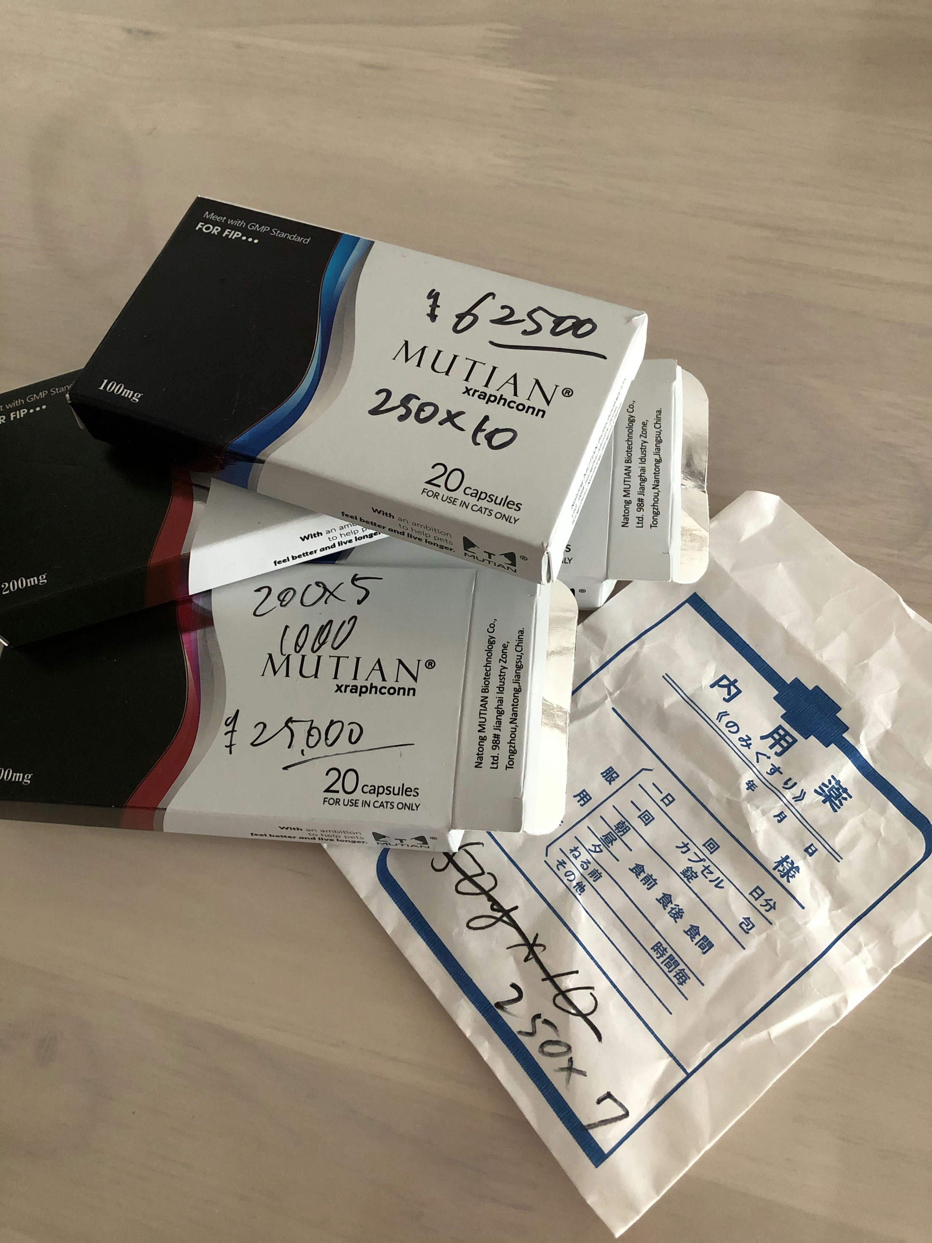 ムティアンの購入方法について、私は保護猫カフェの代表の方がNPO法人ねこけんから特別に薬を購入、送っていただいている物を必要な分を購入し受け取っています。なので領収書が出ない形になっております。本来であれば病院のかかった費用などと一緒に明確に提示必要がありますが、ムティアンの購入は提示できず申し訳ないです。