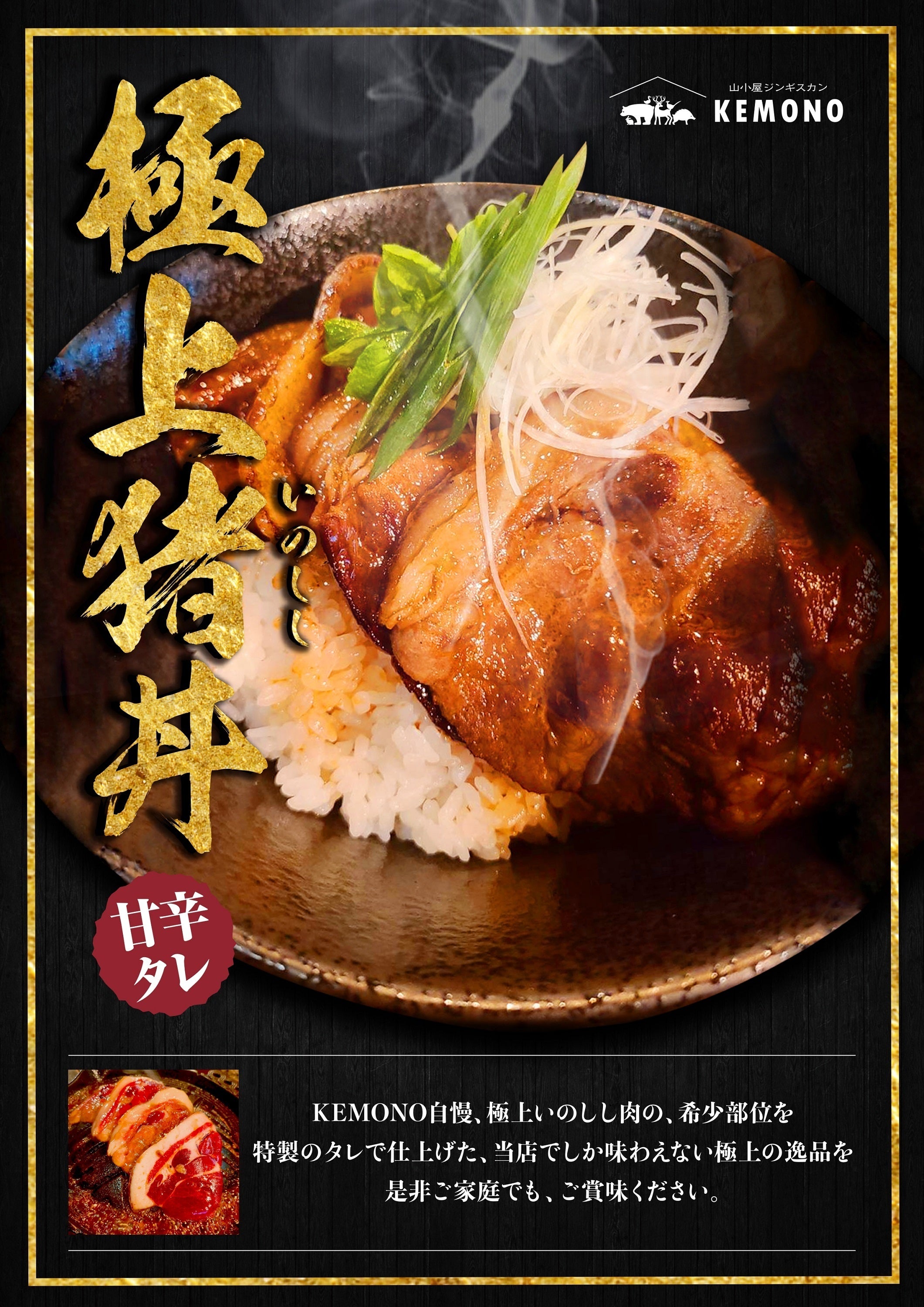 KEMONOの自慢、極上イノシシ肉を丼にしてみました。