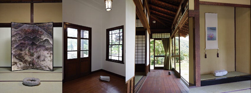 小山町にある豊門会館(国指定 登録有形文化財)は、和と洋の空間を持つ近代様式の建築として大変魅力的です。2017年〜2019年の大規模改修工事を経てより一層魅力的な空間に生まれ変わりました。御殿場市在住の金子朋樹(日本画)と小山町に一時移住(2016年4月〜2018年3月)した小松俊介(彫刻)の2名の作家が、御殿場小山地域を舞台に展覧会を開催したいという思いから、昨年8月に豊門会館において展覧会を企画・実施しました。この展覧会は、豊門会館改修後初のお披露目の場となりました。