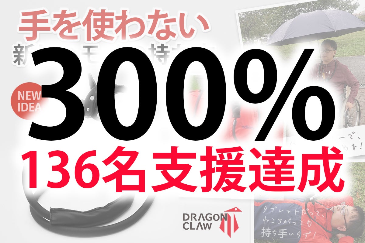 ご支援頂き、誠にありがとうございます!プロジェクト開始12日目にして、目標金額の300%を達成しました!皆様のご支援に大変感謝しております!この「DRAGON CLAW」を、もっとたくさんの人へ届けたいと思っております。ご家族だったり、お友達だったり、職場の方だったり、「DRAGON CLAW」を伝えて頂けると幸いです。残り23日間、最後まで走り抜けます!