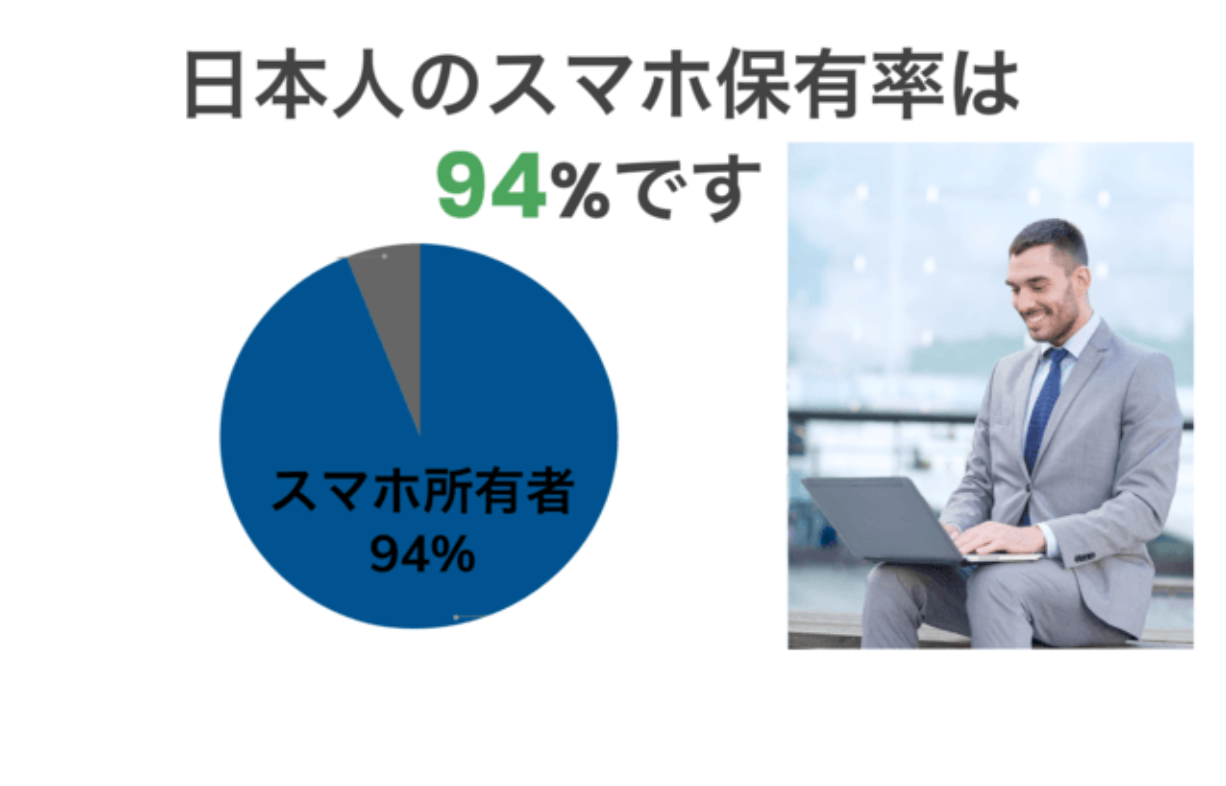 私たちは、スマホ時代になりスマホを所有する人は人口の94%にもなりました。