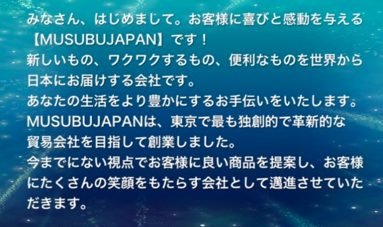 ◯ 事業者の連絡先:Tel: 090-1217-3065 メール: musubujapan.m@gmail.com