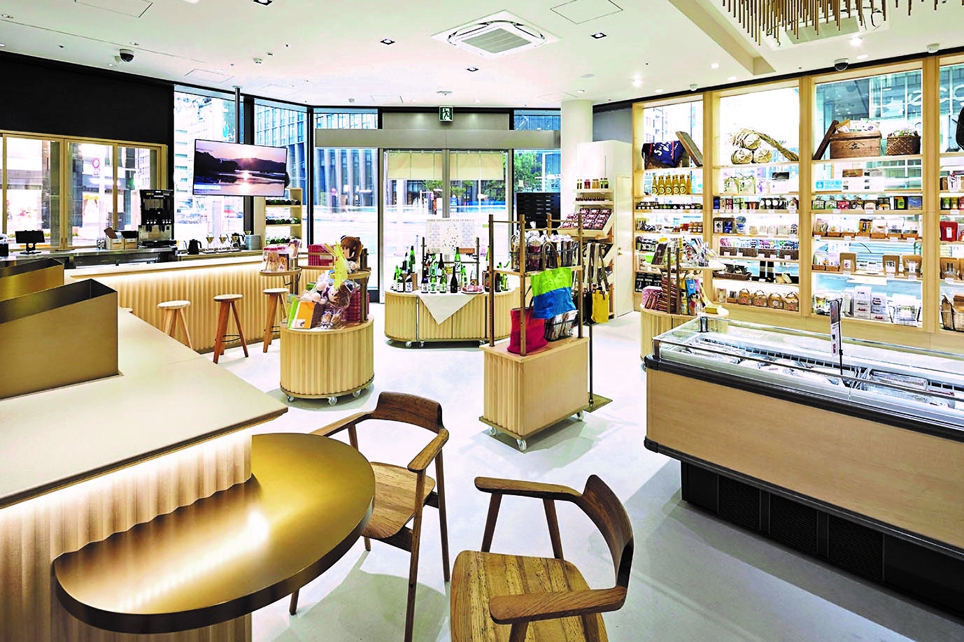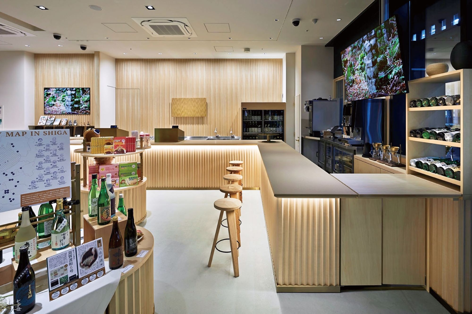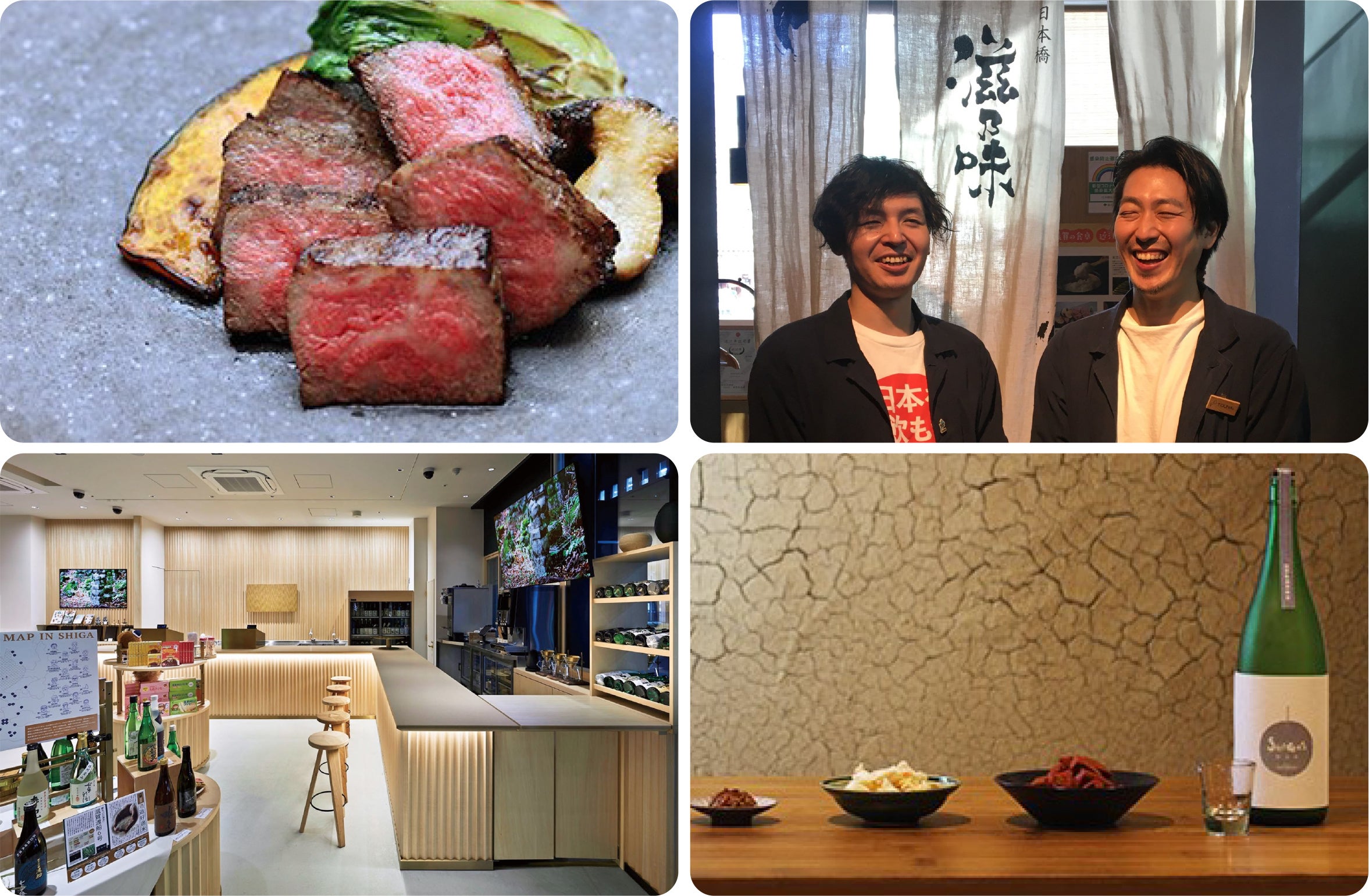 「ここ滋賀」では、滋賀県産のお米やお茶・菓子類、近江牛や湖魚等の加工食品などの特産品の他、信楽焼や織物などの伝統工芸品を常時約1,000アイテム取り扱っています。また県内33蔵の地酒が味わえる『SHIGA'sBAR』。「近江牛と発酵」をテーマに、“寿司”のルーツともいわれる発酵食の「鮒ずし」と、日本の牛肉食のはじまりとされている「近江牛」、そして母なる湖「琵琶湖」に育まれた「湖の幸」などの滋賀の食材をふんだんに使ったレストラン『日本橋 滋乃味』など、滋賀を全身で体感することができます。