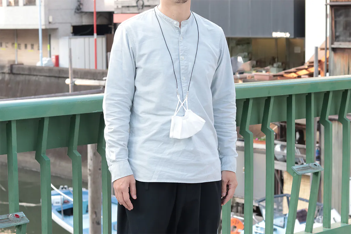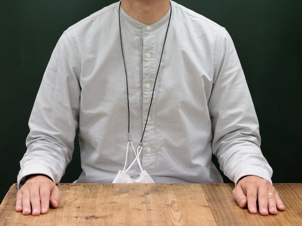 しかし、このように首からぶら下げておけばとても簡単に楽にマスクを外しておく事が出来ます。