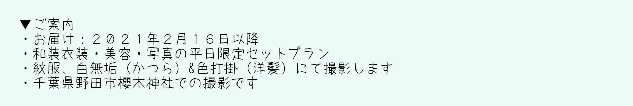 結婚式をまだ行っていないご夫妻や、結婚式はドレスで挙げたご夫妻や、周年記念のを迎えるご夫妻や、前撮り写真として撮影したい方へ、おすすめの内容になっております。