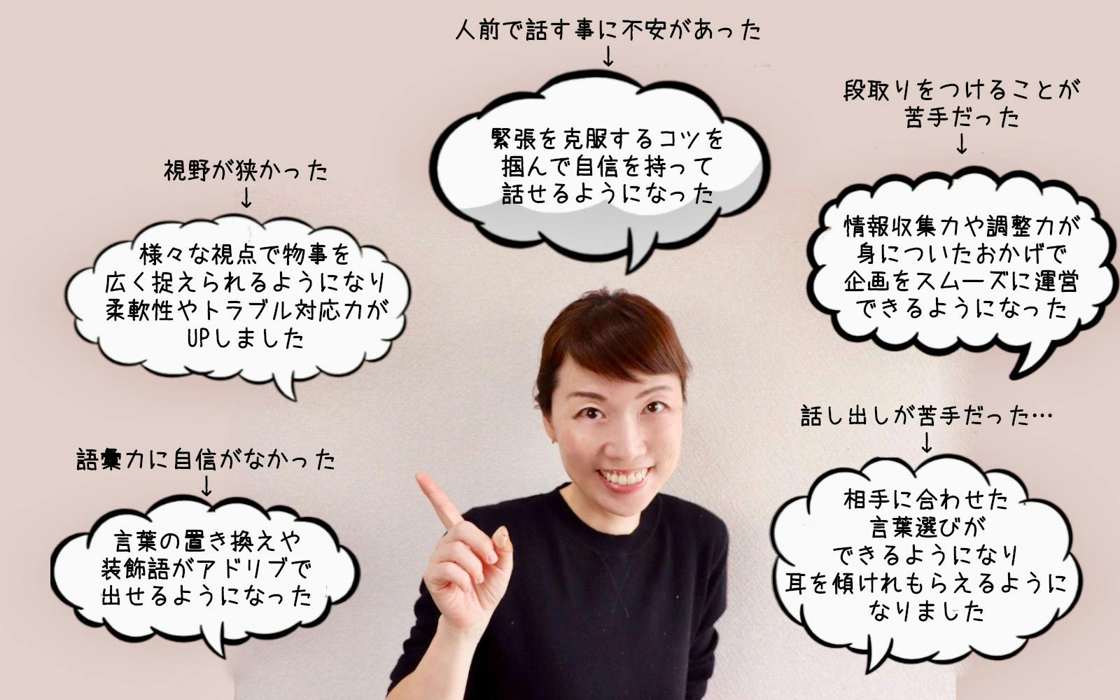 → ミス対処法を知り自信を持って人前で話せるようになった