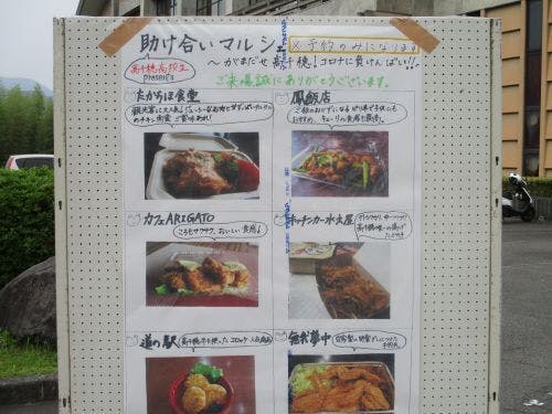 私たちは、学校で地域づくりについて考える活動として地域探求活動を行っています。私たちはこれまで、新型コロナウイルスで経営が落ち込んだ町内の飲食店を支援するためにドライブスルー方式のテイクアウト商品の販売するという企画「助け合いマルシェ」を考え、実行し、地域の皆さんには私達の思いに共感して頂き、当日はたくさんの方に来場して頂きました。