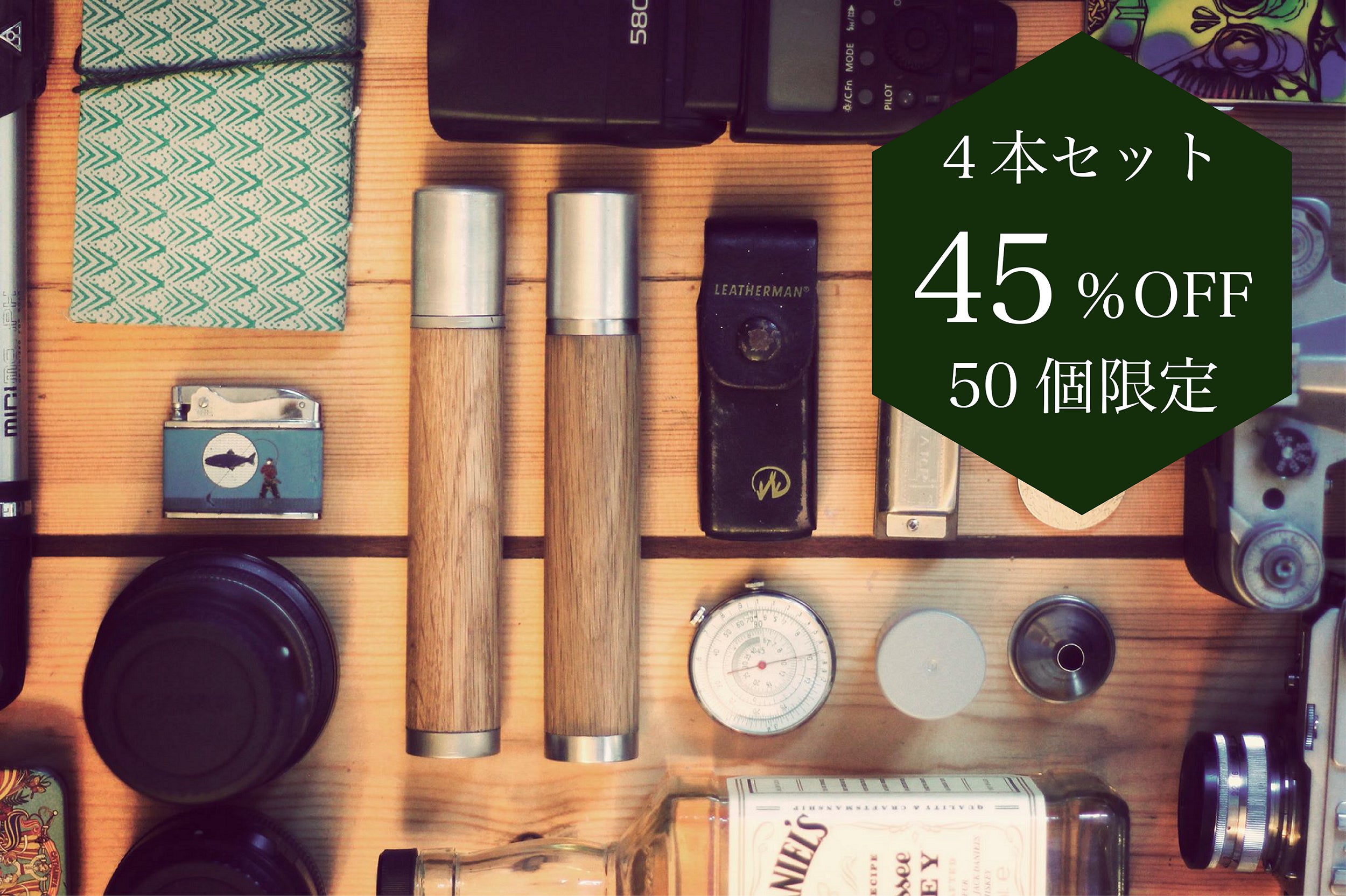 アウトドア利用でも相性抜群な男くささ、武骨な雰囲気を纏いながらも、木の温もりとステンレスによるスタイリッシュな都会の雰囲気をも持ち合わせた逸品です。