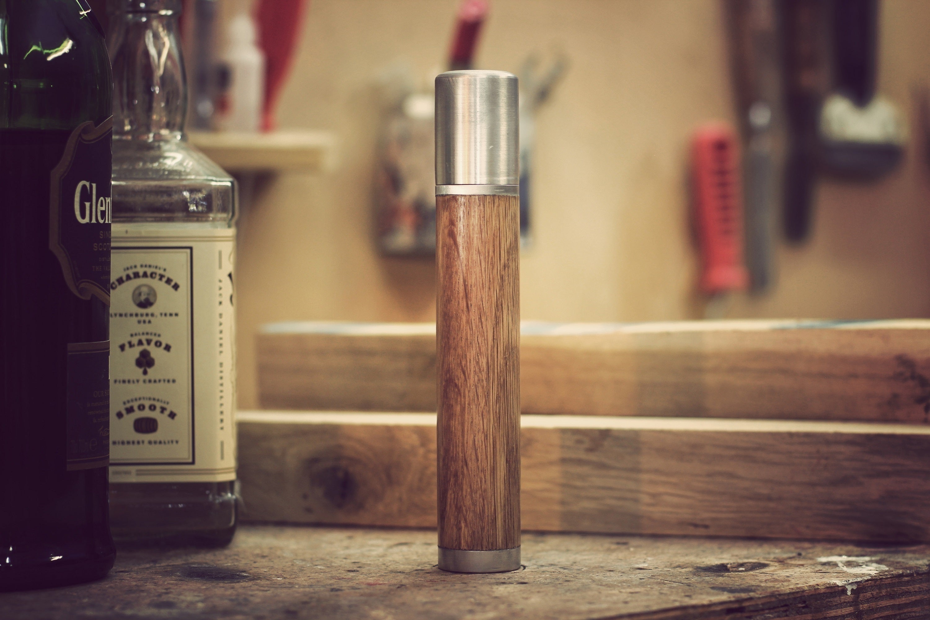 オーク材とステンレス鋼を素材に選んだ理由は、実用性と伝統です。 オーク材はワインやウイスキーの熟成樽として使われており、貿易の長い歴史の中で定番とされてきました。またオークは、その質感、断熱性が優れているだけでなく、時間の経過とともに、より濃く美しくなり手になじむ、貴方だけの作品へと変化していきます。