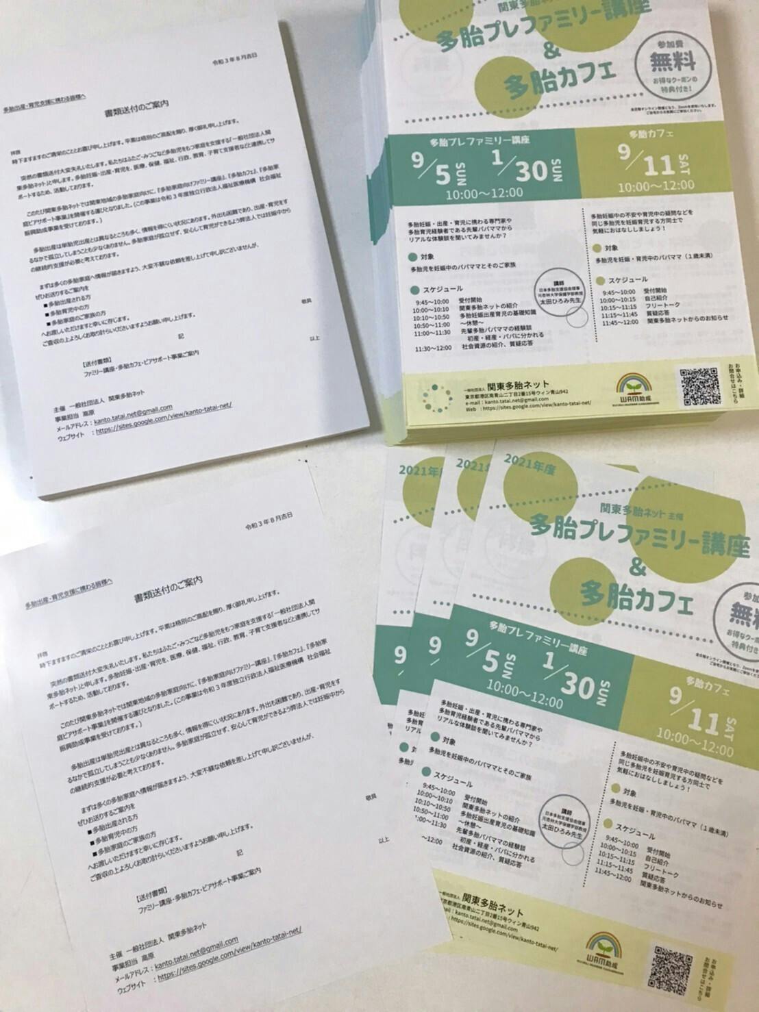記念すべき、関東多胎ネット…通称カンタ主催の【第1回プレファミリー講座&多胎カフェ】開催に伴い、一人でも多くのプレファミリーや多胎児家庭、そして支援に携わる方々に情報が届くよう、チラシを郵送させていただきました。