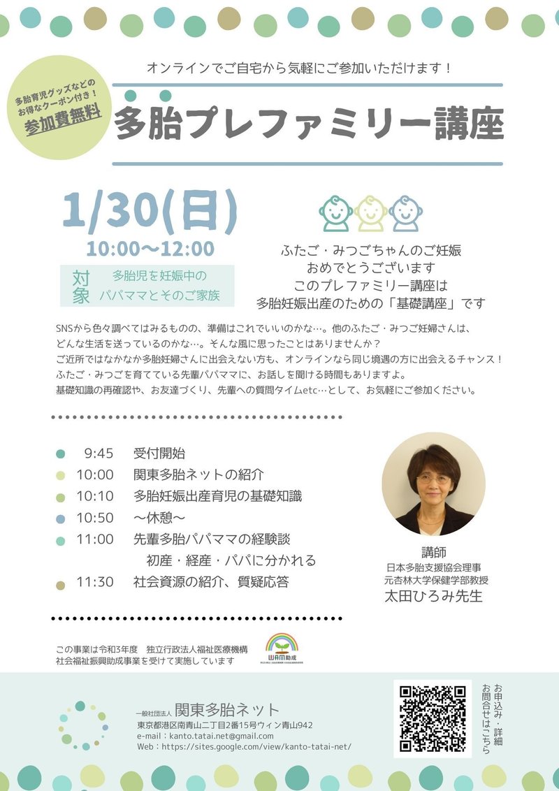2022年1月30日(日)に第2回多胎プレファミリー講座を開催いたします。