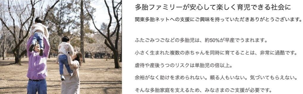 関東多胎ネットでは、このような活動を長く続けるための寄付、ご協賛をいただける企業様・個人の皆様を募集しております!