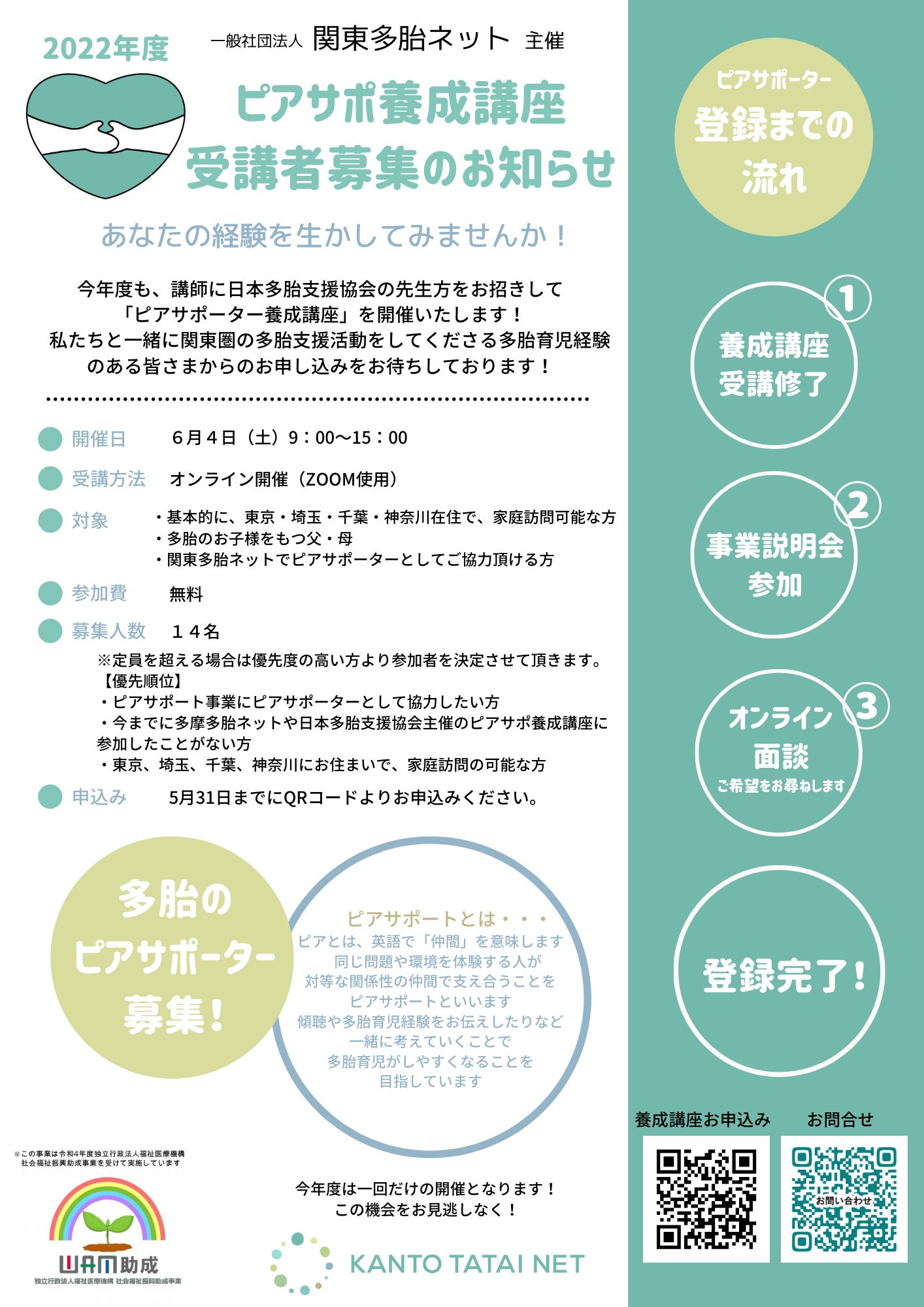 多胎のピアサポーターとして関東圏の多胎支援にご協力頂ける方は、ぜひぜひお申込み下さい!!