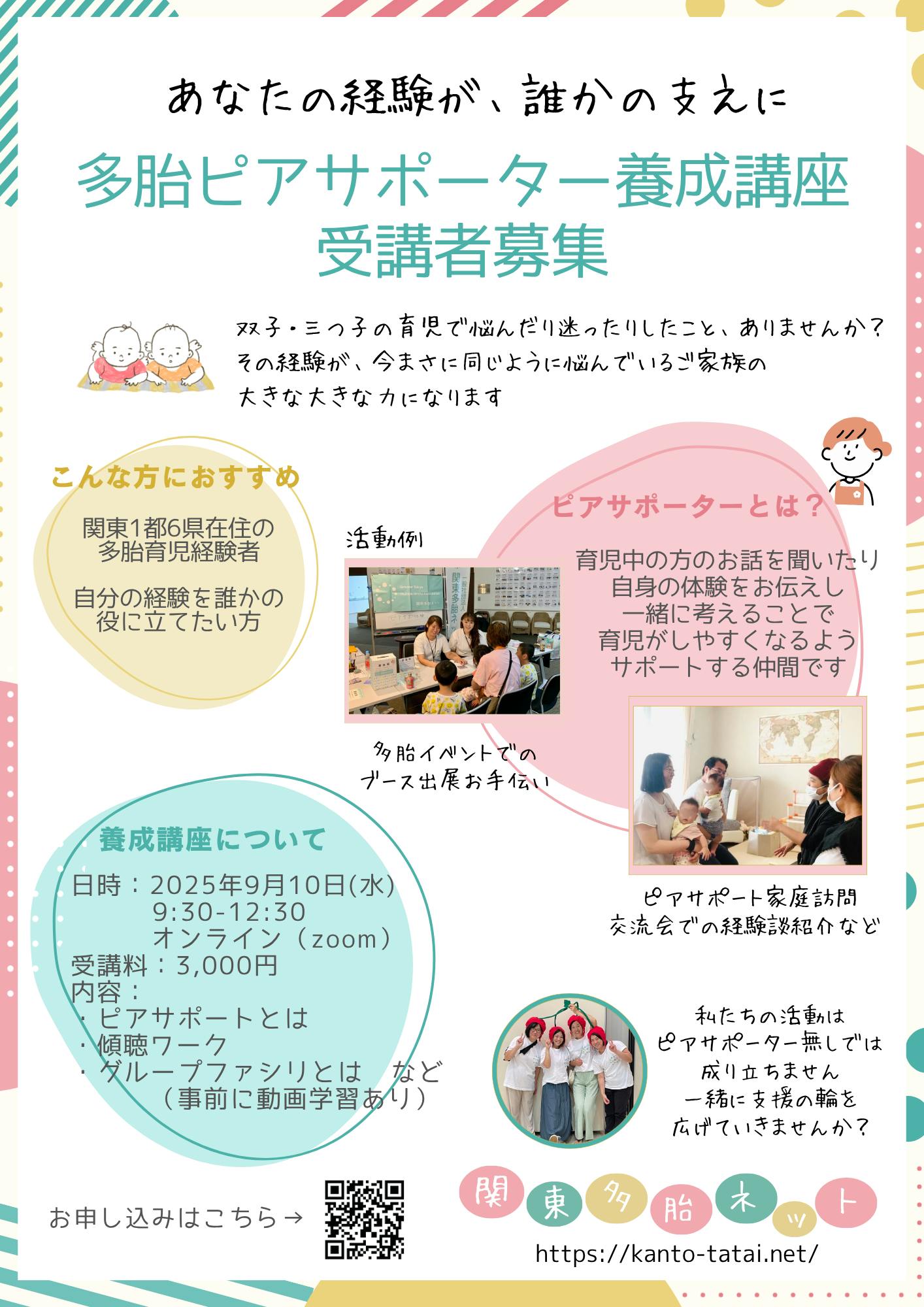 多胎ピアサポーター養成講座開催のお知らせ