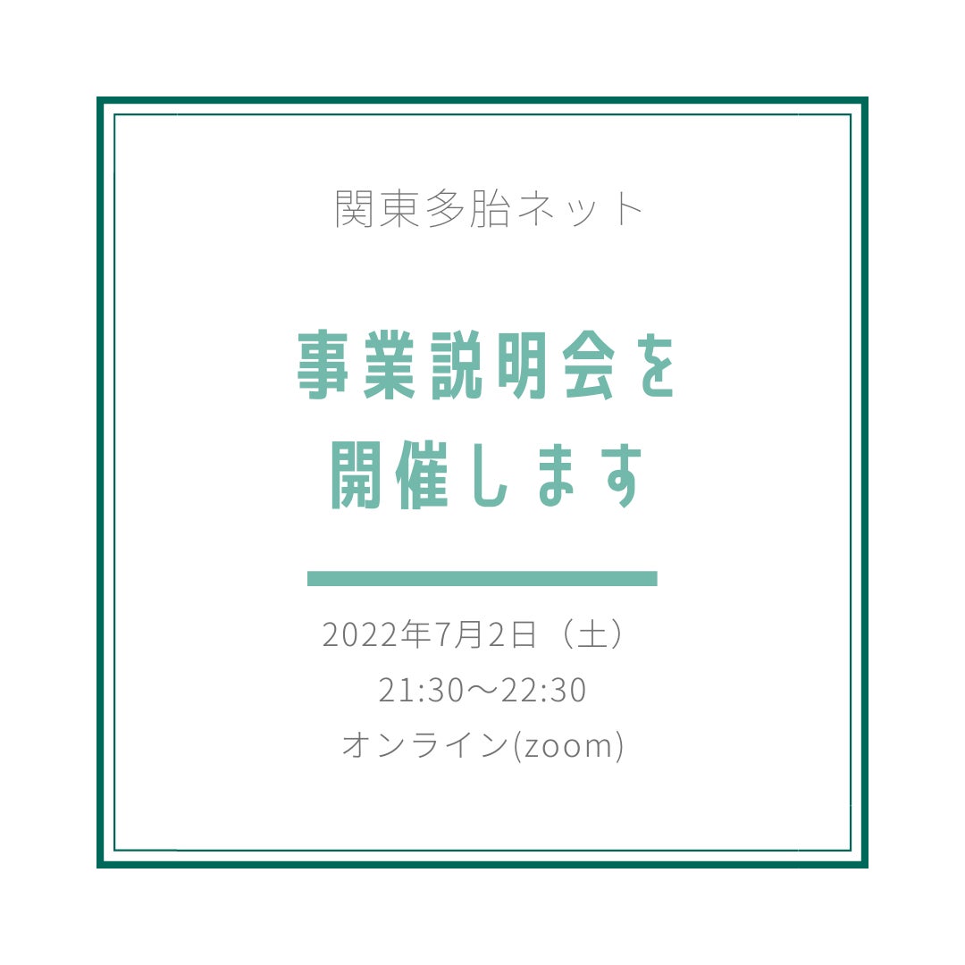 こんにちは!一般社団法人関東多胎ネット事務局です!梅雨入りしたと思ったら、真夏日の蒸し暑さ…と、目まぐるしく変わるお天気に翻弄されている方も多いのではないでしょうか。事業説明会を開催します!ここ最近メディアで取り上げて頂く機会も多くなり、ありがたいことに関東多胎ネット(通称カンタ)の活動を知って下さる方が増えてきました。そこで、より深くカンタを知っていただくため、事業説明会を開催します!開催日時7月2日(土)21時30分~22時30分(終了目安)オンライン開催(ZOOM使用)参加対象・関東多胎ネットの事業内容に興味のある方・プロボノやボランティアでご参加いただける方・寄付をお考えいただいている方・関東多胎ネットのことを知りたい方ならどなたでも!(営業目的の方はご参加いただけません)事業説明会の内容今回の事業説明会では以下のことをお話しする予定です。①関東多胎ネットってどんなことをしているの?②関東多胎ネットへのご参加・ご支援について③質疑応答お申し込み方法興味がある!参加してみたい!と思ってくださった方は、こちらからお申し込みください。https://forms.gle/74dpTF4rJ6AS4q956(入力時間目安:1分)皆様のご参加をお待ちしています!当事者でなくとも、支援者でなくても構いません。どなたでも参加OK!「関東多胎ネットって最近よく聞くけれど、何をしてる団体?」「具体的にどんな活動をしているの?」「私も何か手伝えたら…」「ボランティアやプロボノとして参加したい!」「寄付したいと思っているのだけれど…」少しでも興味をお持ちいただけましたら、お気軽にご参加ください。関東多胎ネットは「多胎ファミリーが安心して楽しく育児できる社会の実現」を目指し、活動しています!関東多胎ネット