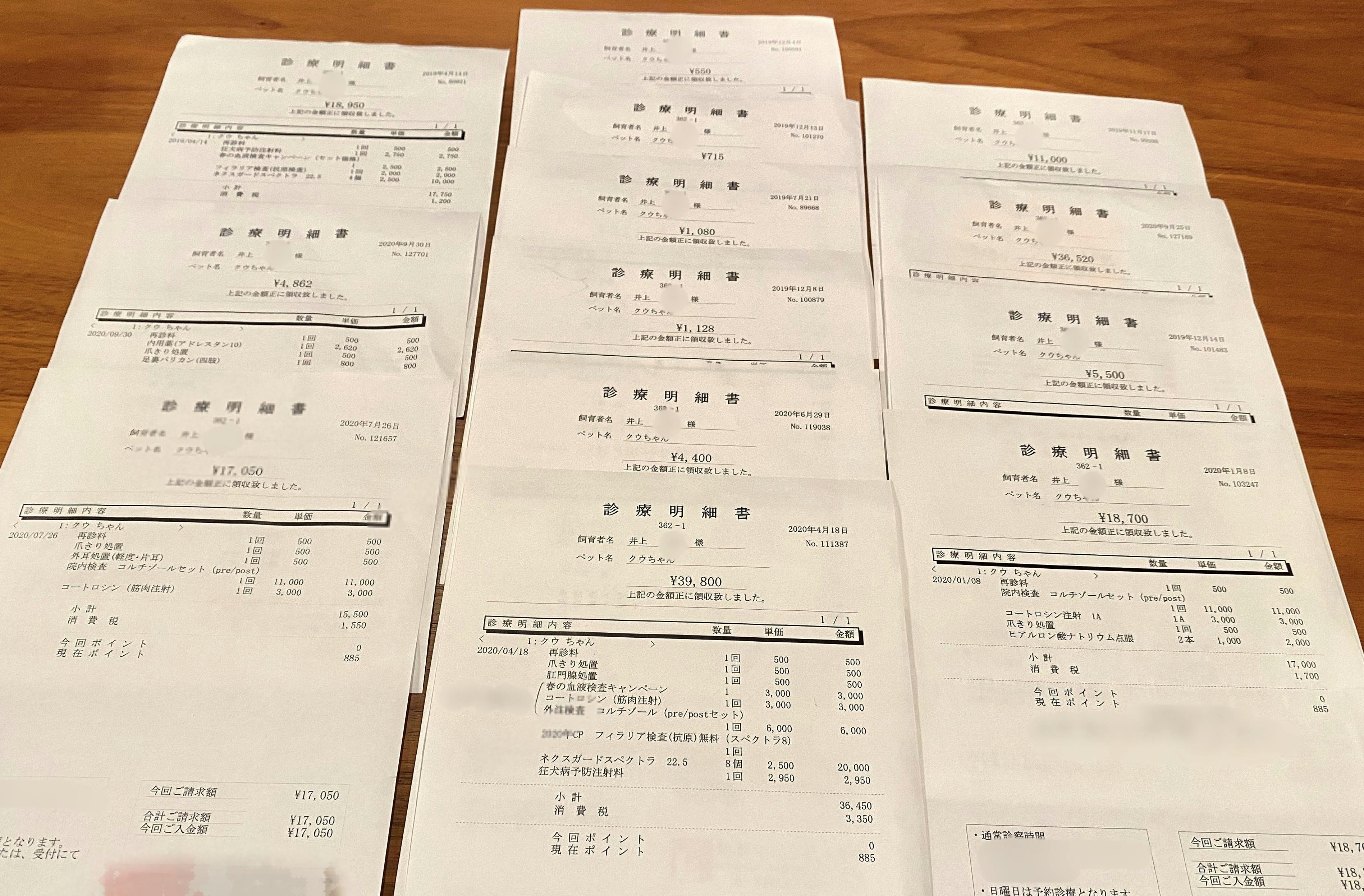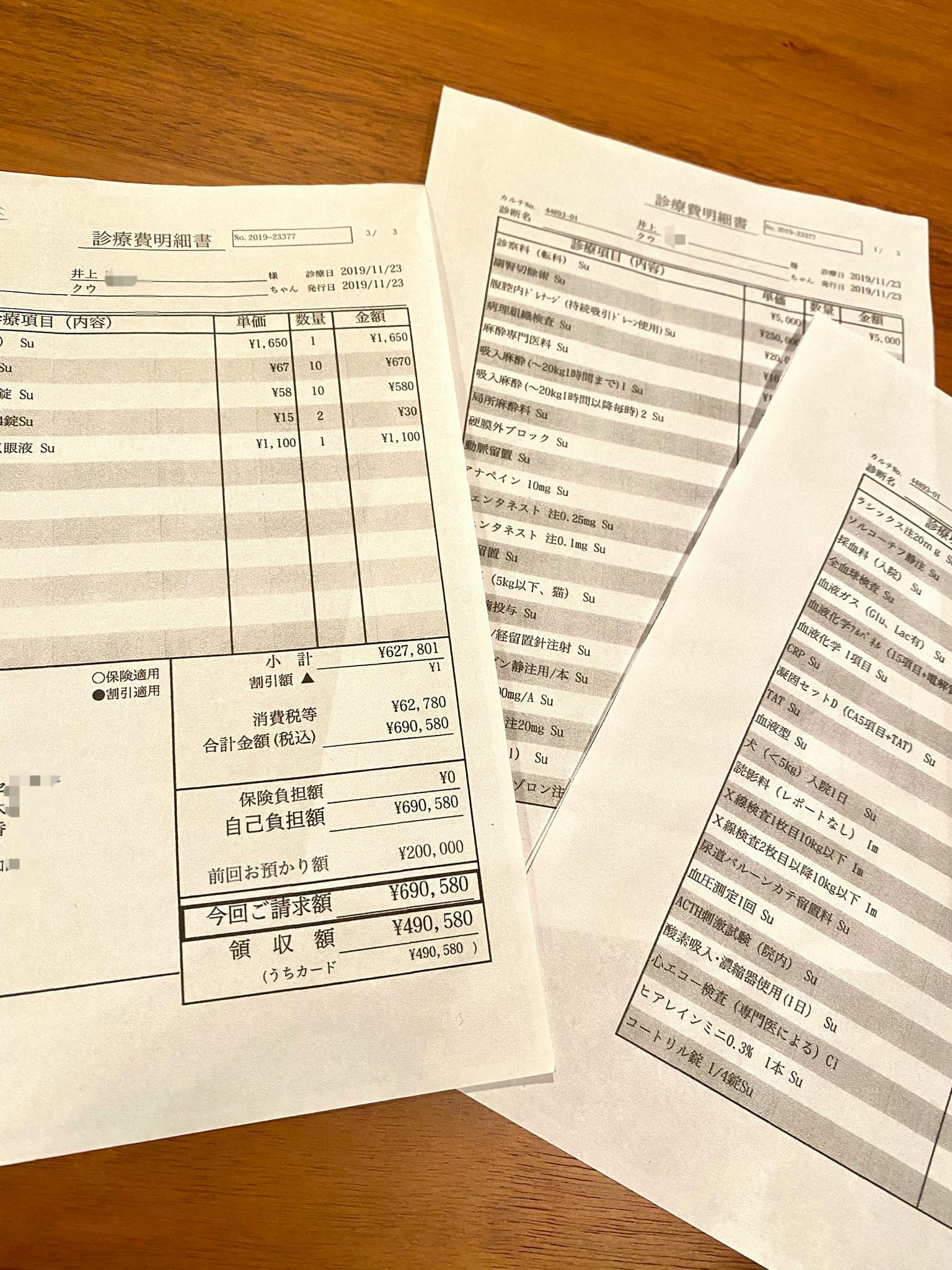 (なお、これは手術先の動物病院での費用です。かかりつけの動物病院での手術前後の治療費用は含まれておりません。)