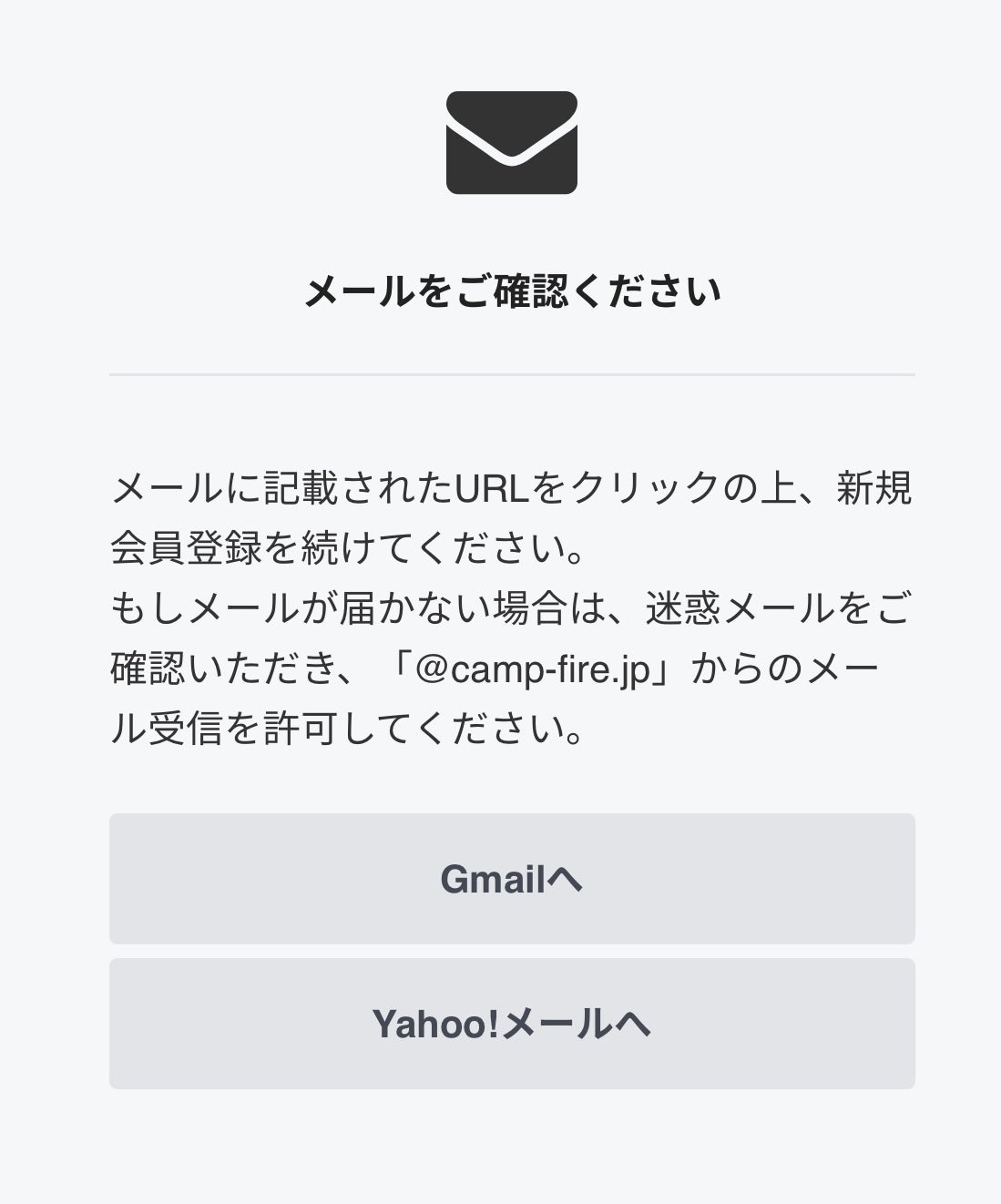 登録したメールアドレスにCAMPFIREからご支援受付のお知らせが届いたら手続きが完了です