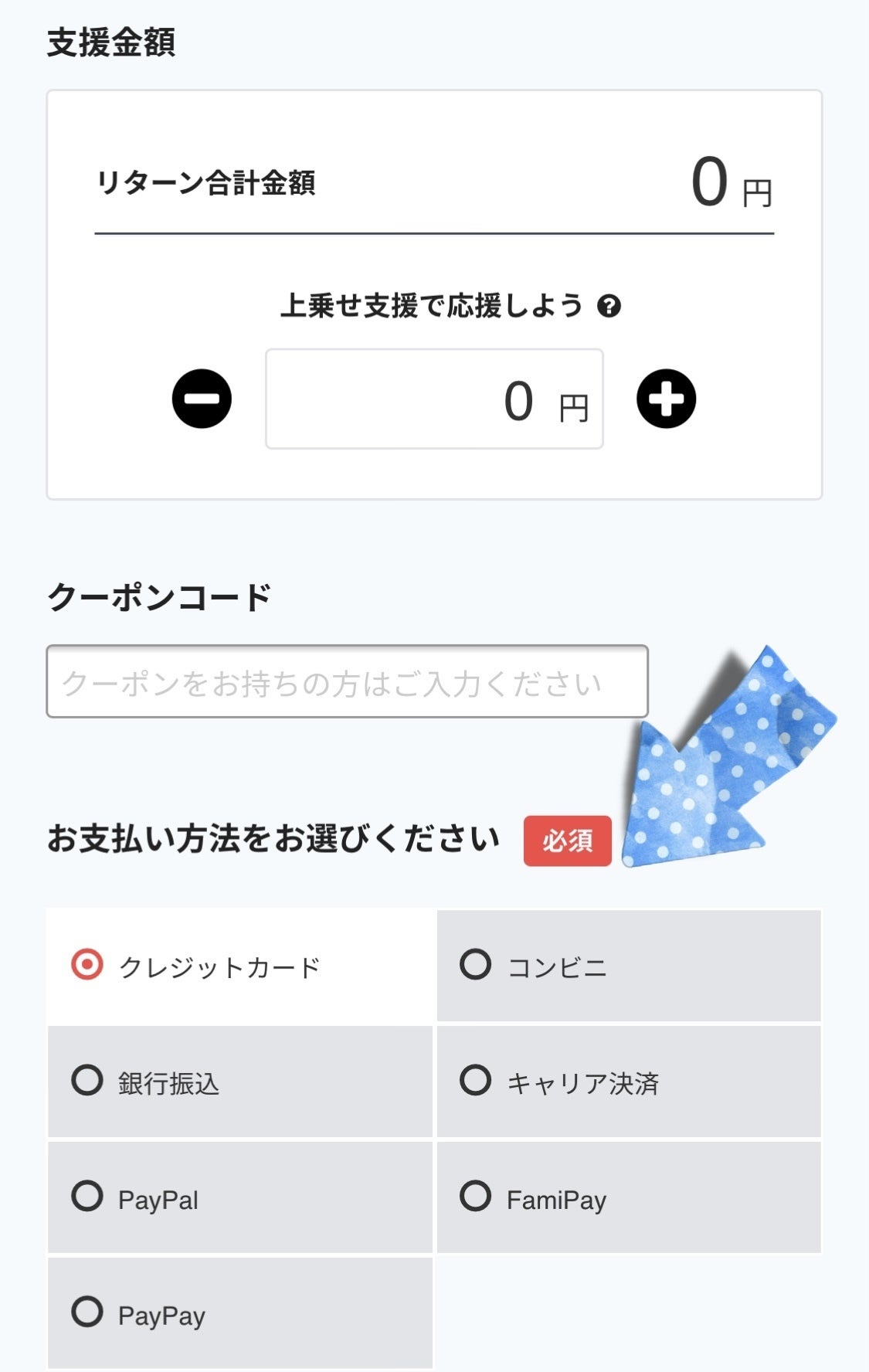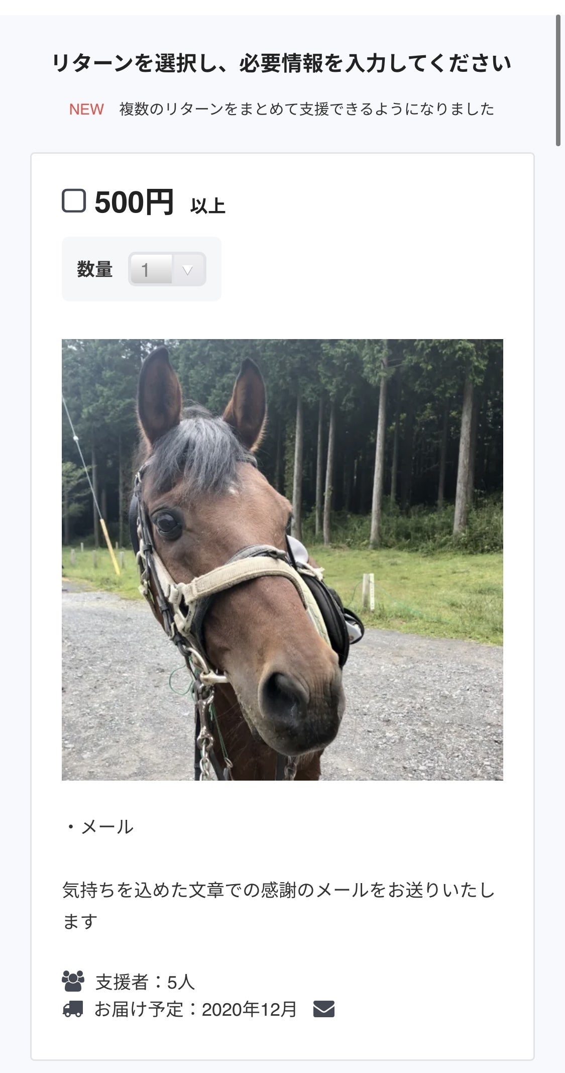「上乗せ支援で応援しよう」 ボタンで、500円ずつ応援金額を上乗せもできます