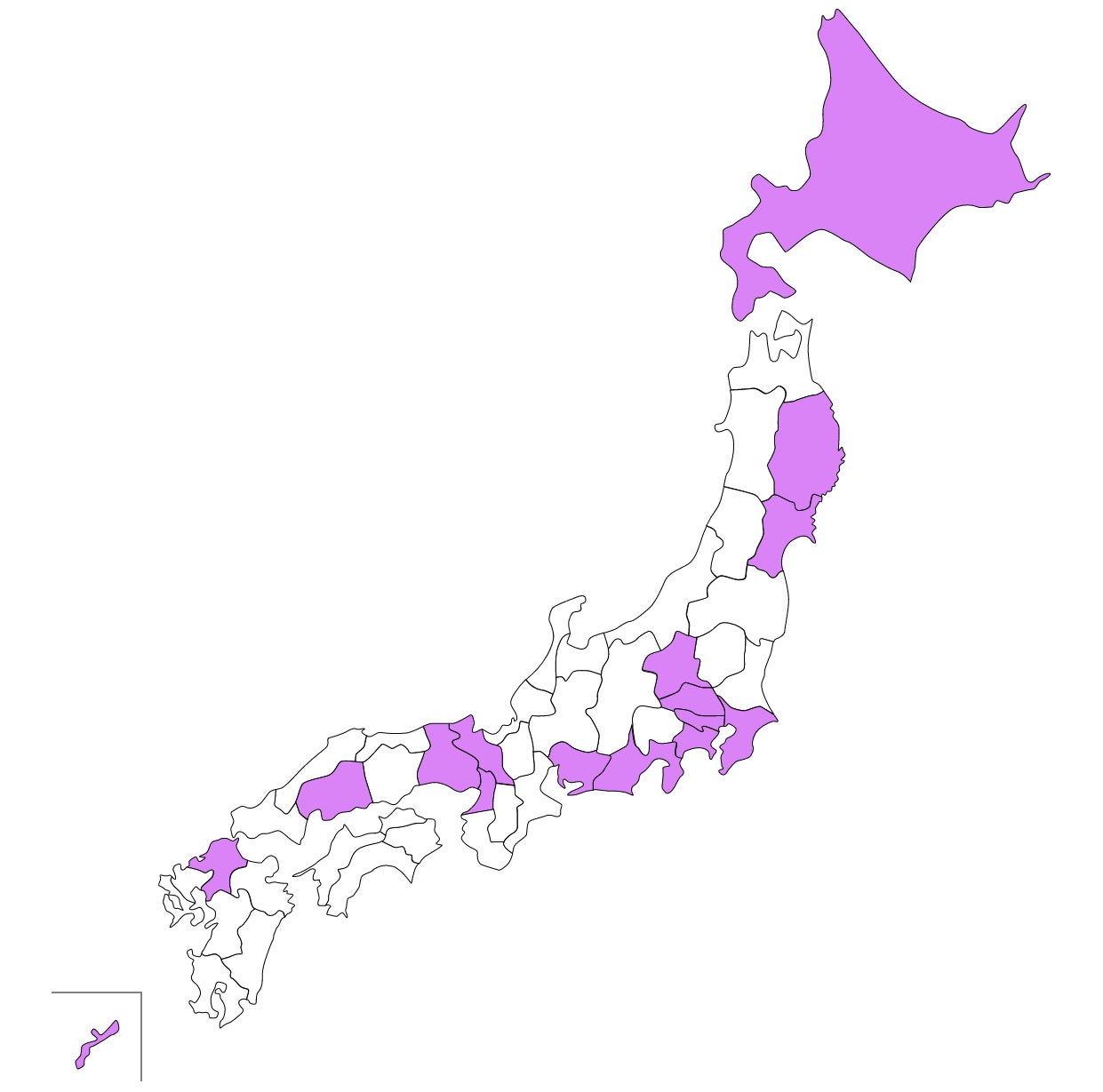 現在、47都道府県のうち、下記の日本地図の16都道府県にフリーマガジンを設置することができました!!!