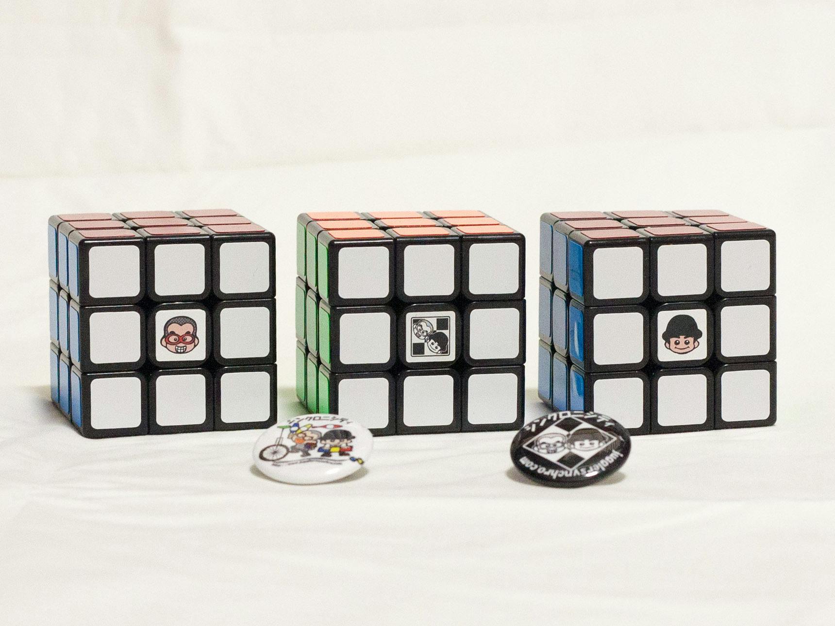 シンクロニシティグッズとしてオリジナルキューブ(キューブアートに使っているものと同じものです)・缶バッジ・Tシャツなどなど。また、ご協力いただいているtribox ストア様とのコラボレーションもございますので、キュービストの皆様もご期待ください。