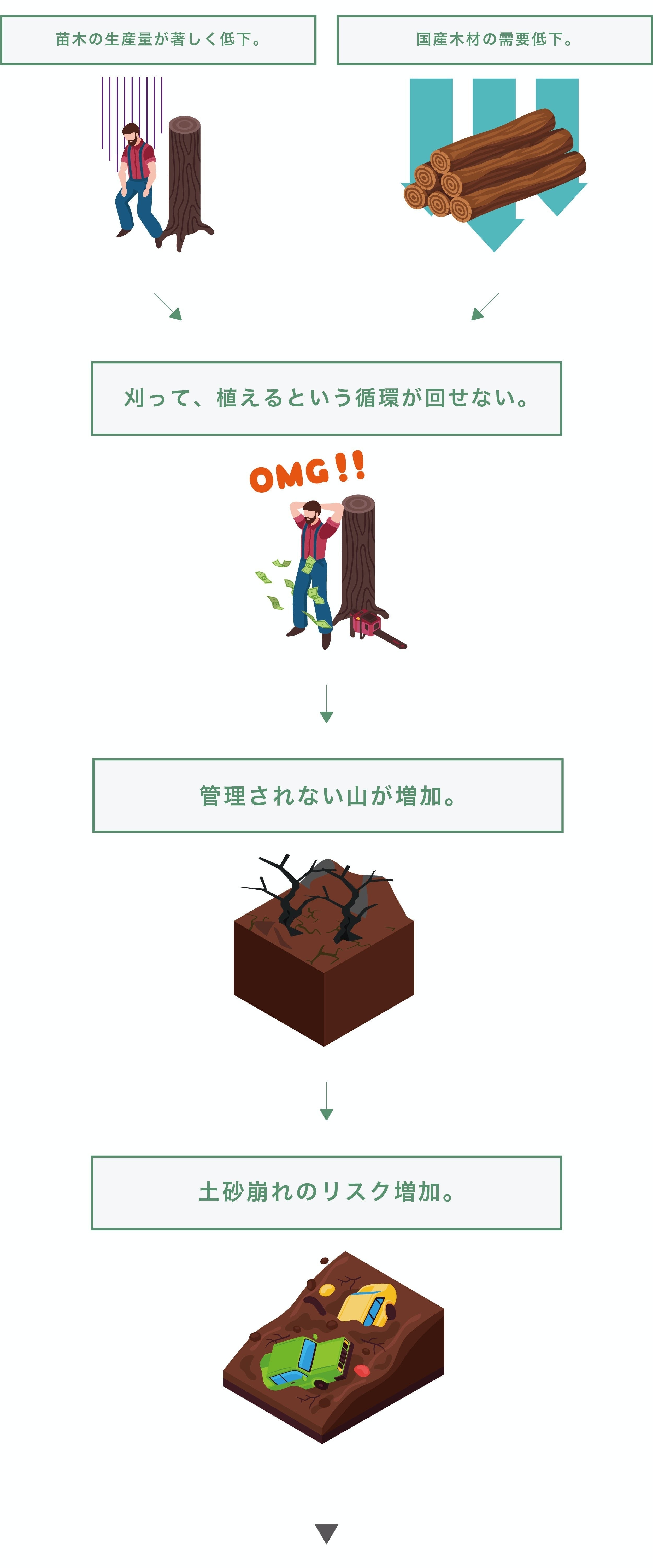 伐採したものの新しい苗が植えられない山が増えていきました。