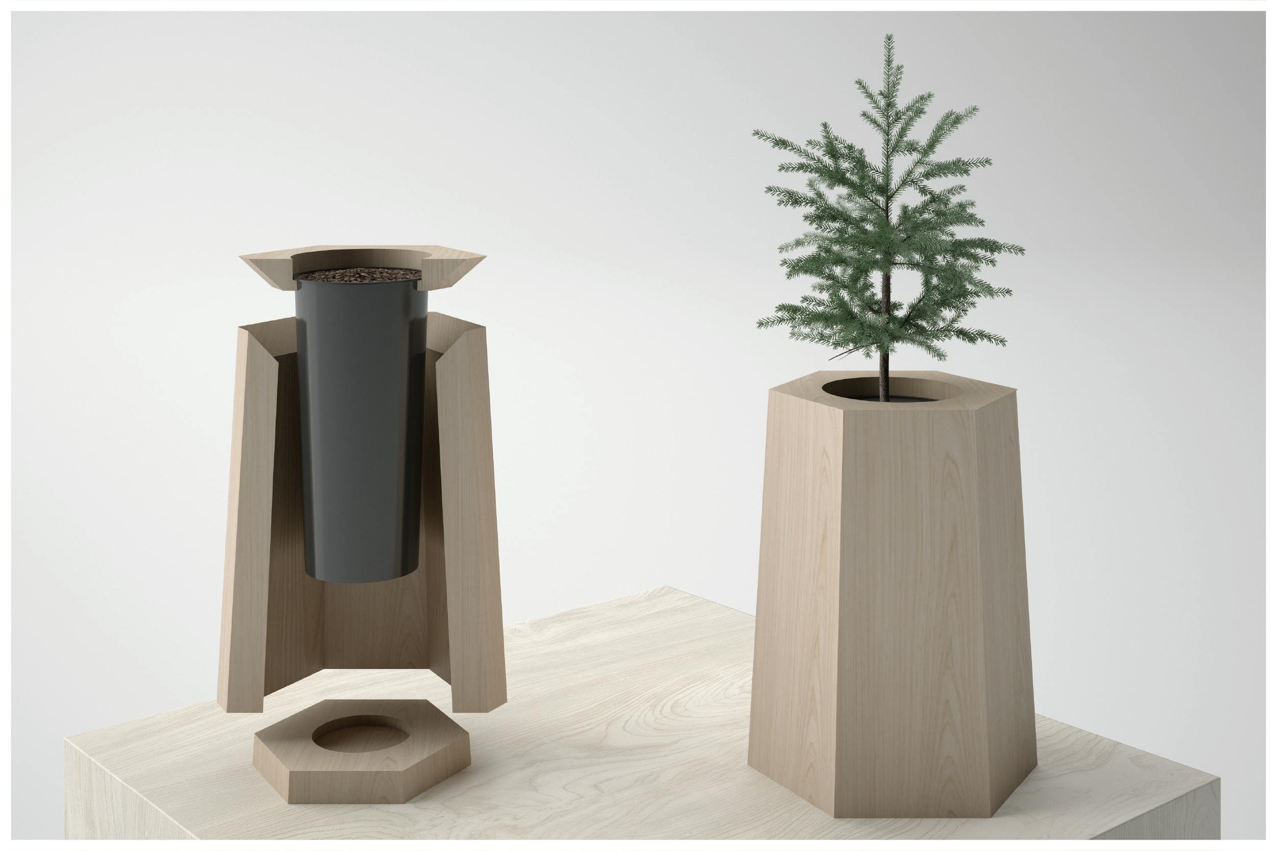 お部屋で育った後、一本の木として森の中で生き続け、50年後にはどなたかの生活に寄り添うものへと