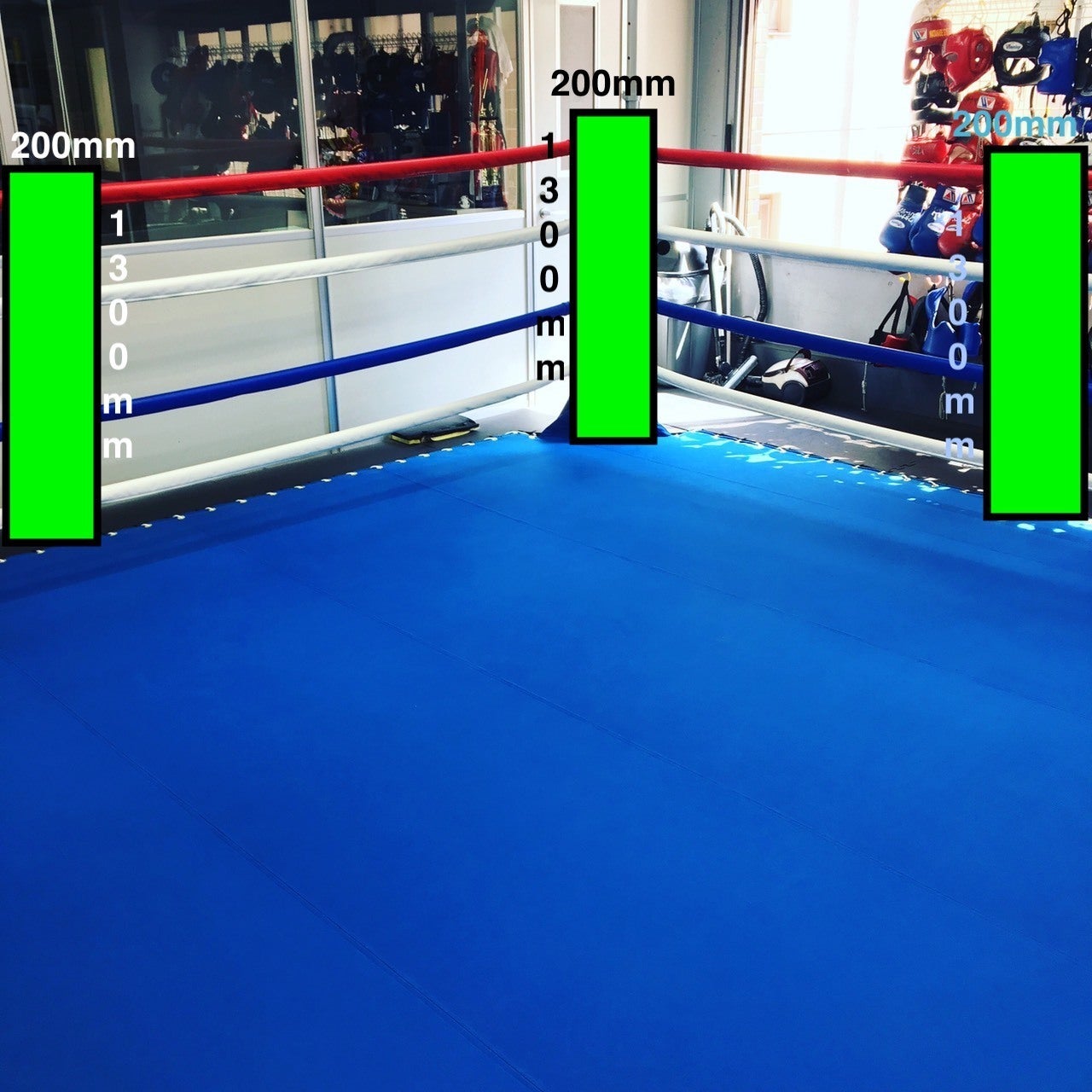 今リングでの試合を想定した練習が出来るようにL字型のリングコーナー=ロープ面を設置します。