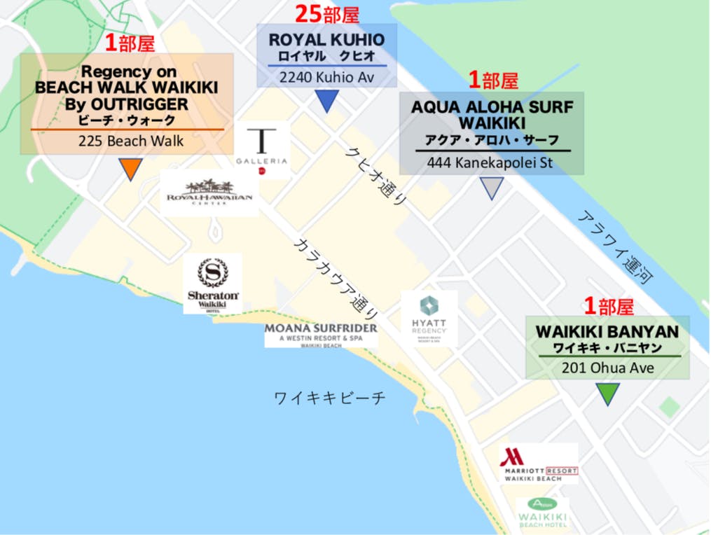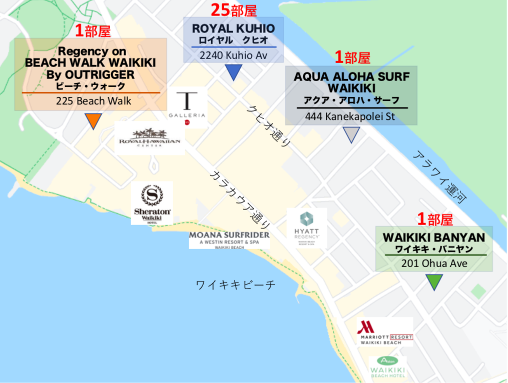 ワイキキ中心に位置した、好立地のコンドミニアムのお部屋を28部屋をご提供させて頂きます。