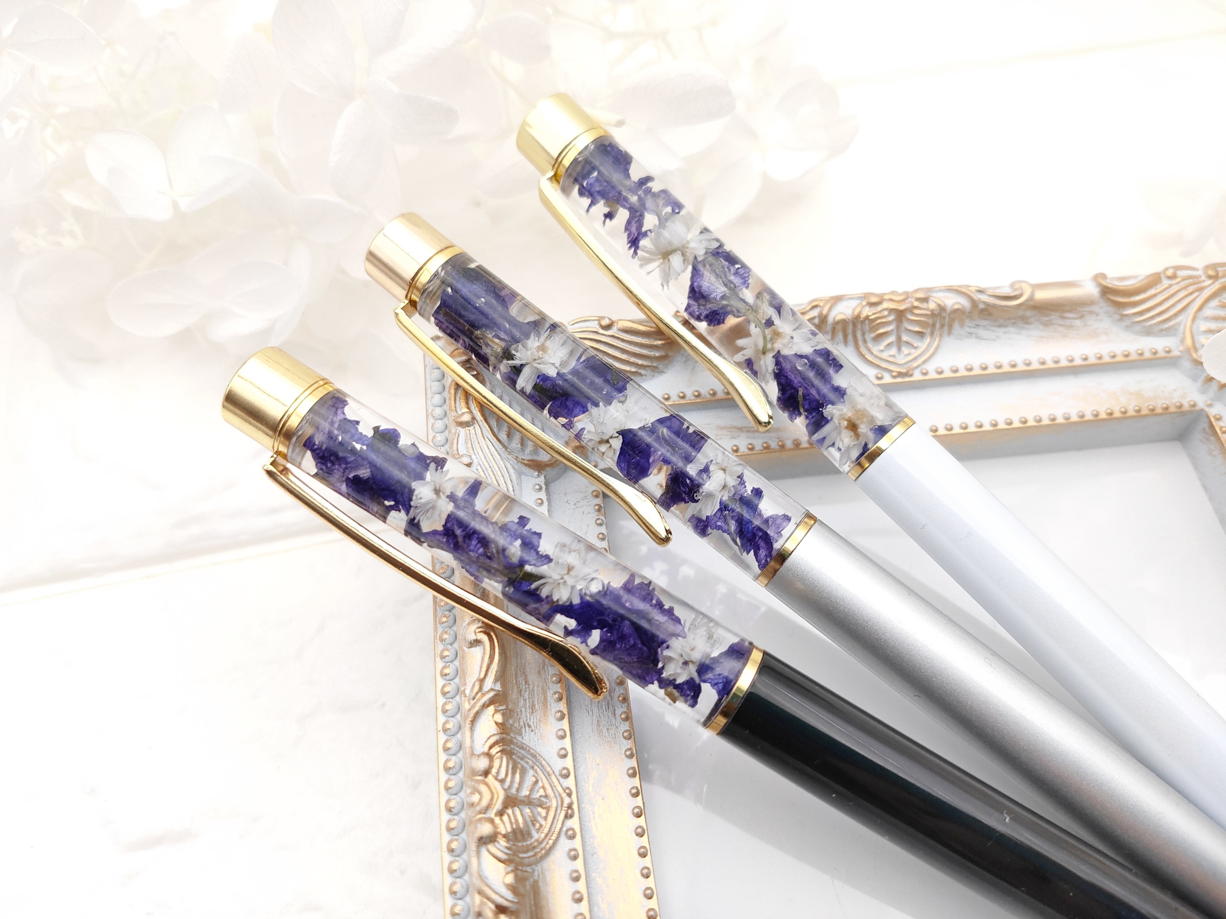 5000円のリターンには春のサシェと共にデルフィニウムなどの春の花を使ったボールペンをお贈りできたらなと思っています♡