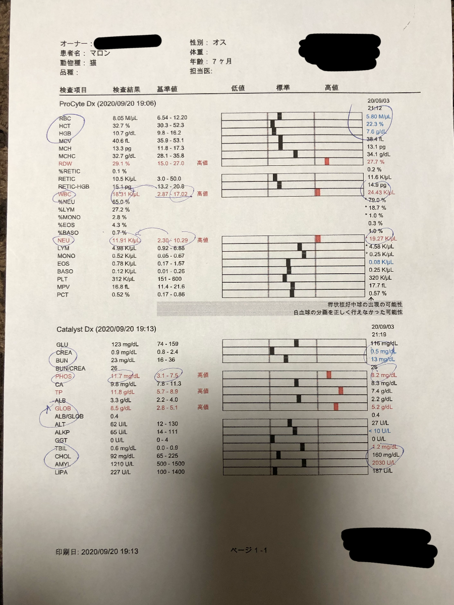 8/27 毛が多すぎて気づかなかったのですが、お腹が結構大きいと感じて病院に連れていった時検査しましょうと言われて、腹水を少し抜いて検査してもらいました。