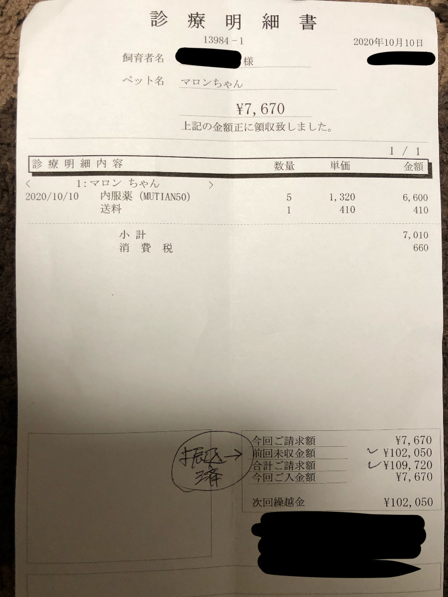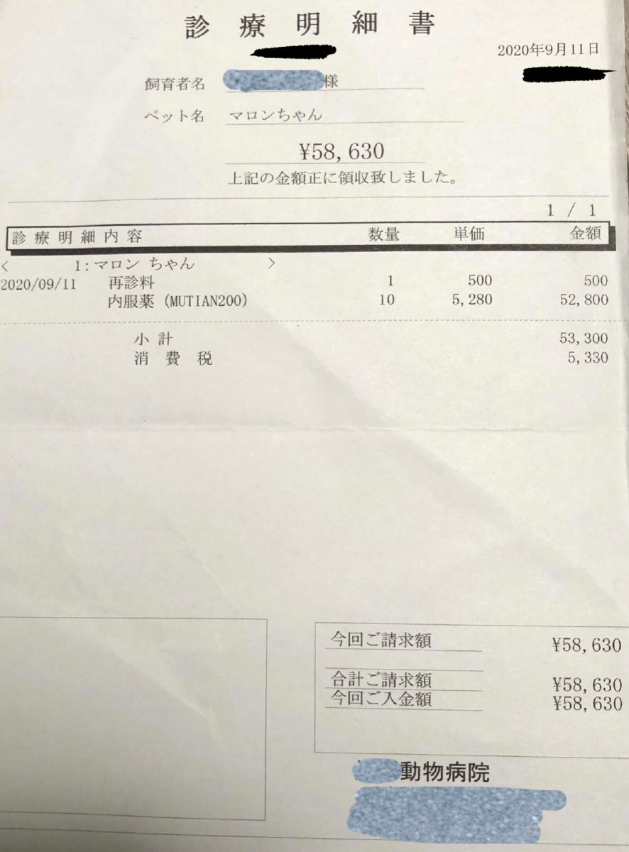 マロンが通院している病院は、200mgが約5300円なので計算したところ薬代だけで45万円以上の高額な費用が必要となります。もしかしたら体重が増えるとその額が倍になったり、ウエットのみでなく別のタイプを引き起こしても額が膨れ上がります。