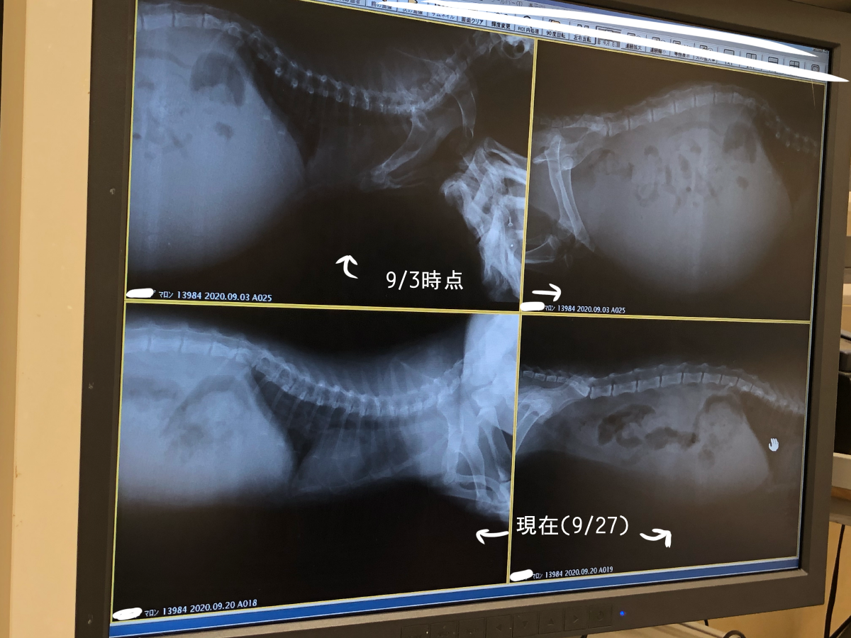 マロンは現在順調に熱も下がり、食欲・元気両方回復してきています。84日間の投薬スケジュールは今のところ問題なく進んでいます。