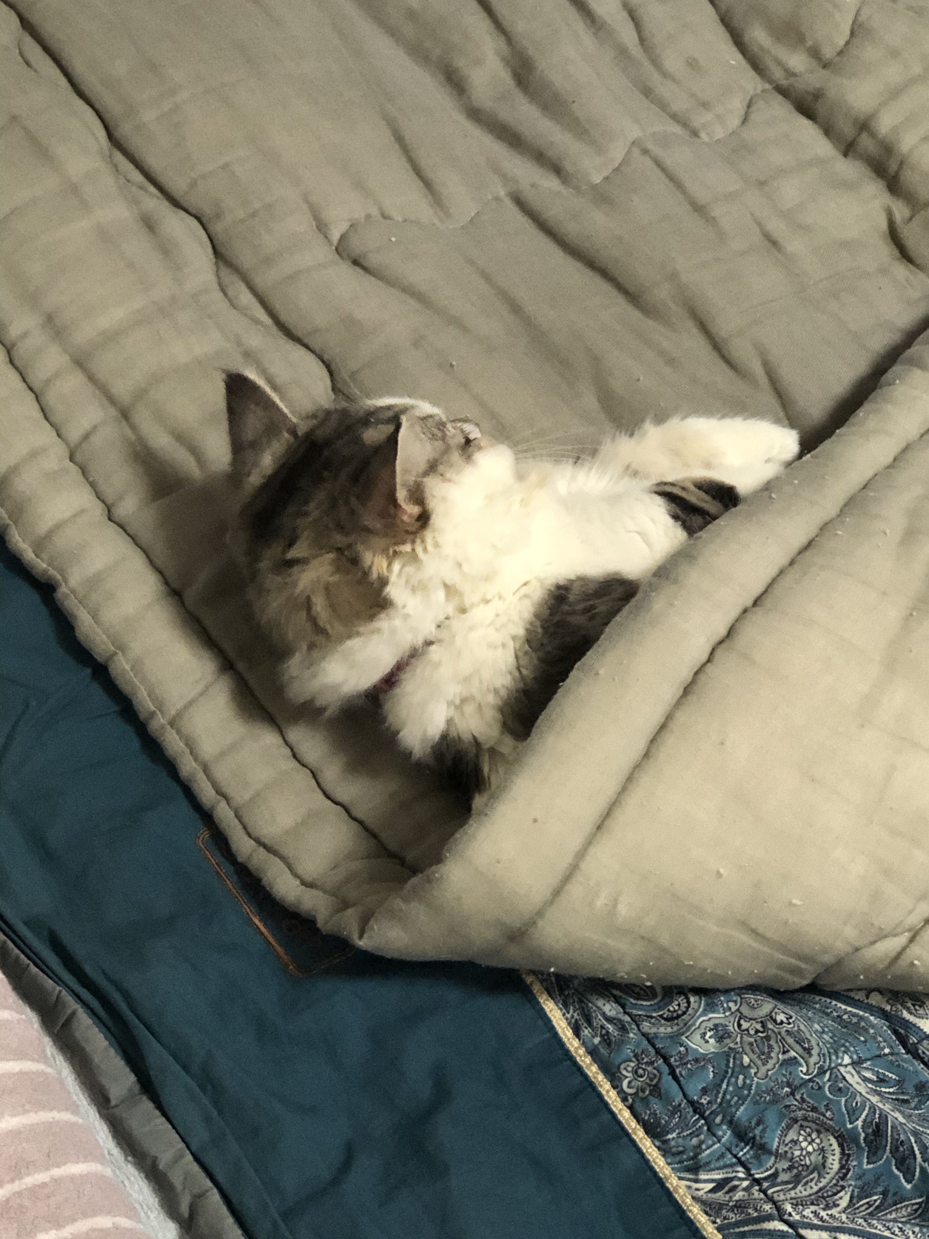 マロンは布団に潜って寝たり噛んだりしてやんちゃさんに成長していってます(笑)