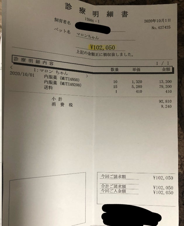 マロンが通院している病院は、200mgが約5300円なので計算したところ薬代だけで45万円以上の高額な費用が必要となります。もしかしたら体重が増えるとその額が倍になったり、ウエットのみでなく別のタイプを引き起こしても額が膨れ上がります。
