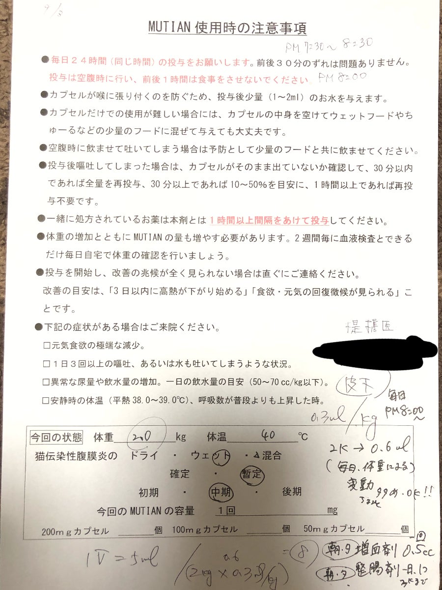※「MUTIAN」は日本において動物医薬品として承認されていません。マロンの飼い主として、個人的な自己責任と判断のうえで彼にとって投与が必要と考えていますが、全てのFIPの猫に「MUTIAN」が有効であるという趣旨ではありません。