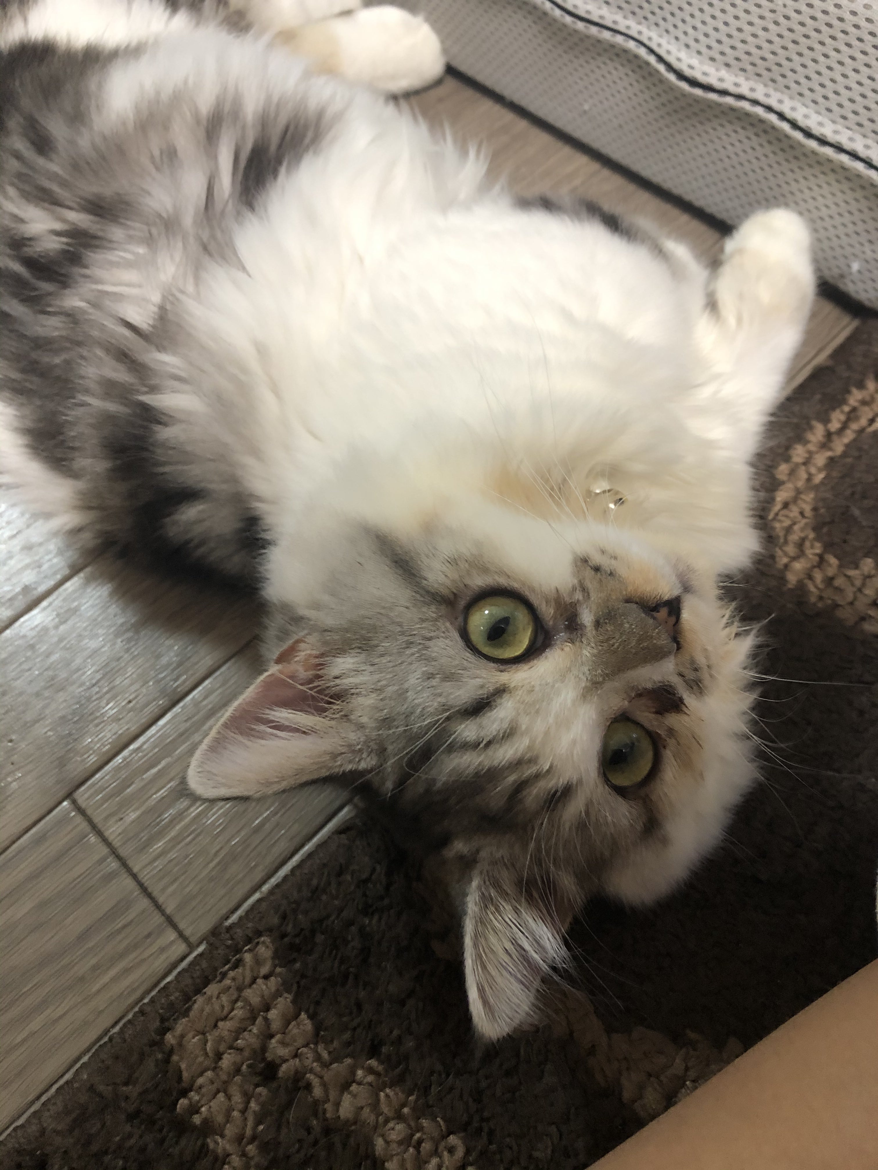4/20 元々猫風邪気味とは聞かされていたのですがくしゅんくしゅんとくしゃみをしていました。保護猫活動をされてる方から、薬を頂いていたので(病院で処方されたもの)家で治療していました。