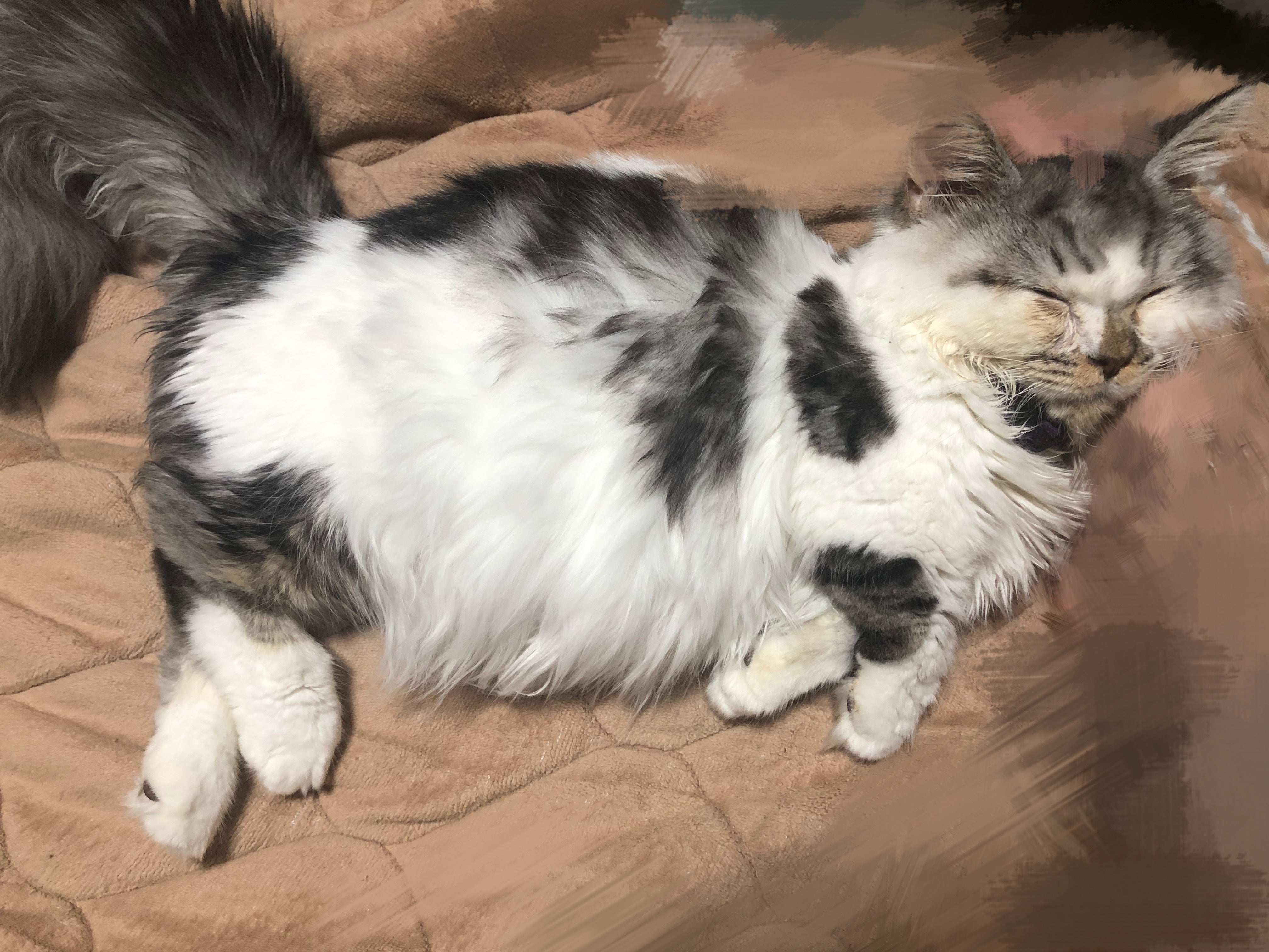 8/27 毛が多すぎて気づかなかったのですが、お腹が結構大きいと感じて病院に連れていった時検査しましょうと言われて、腹水を少し抜いて検査してもらいました。
