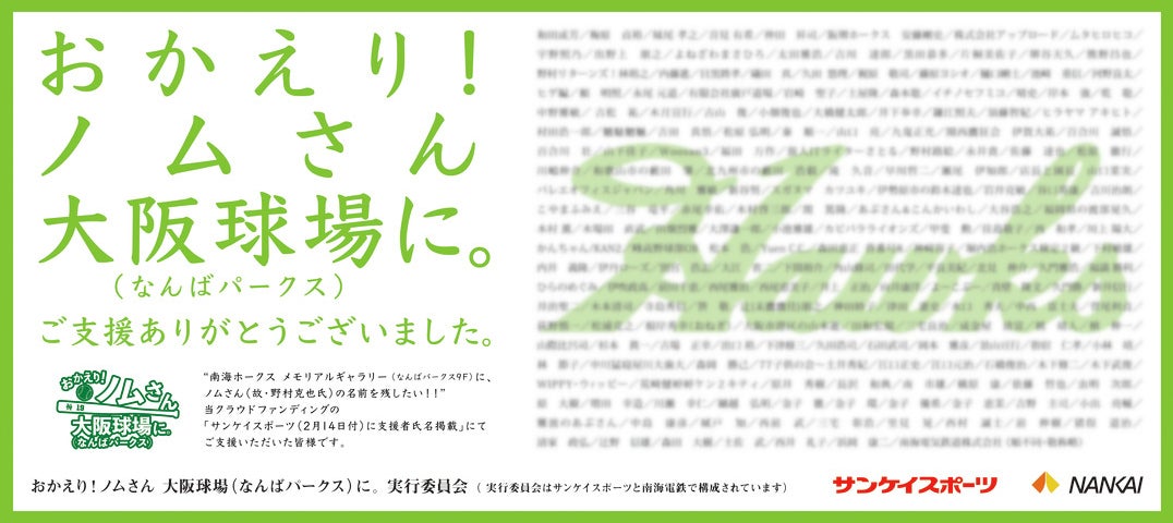 おかえり!ノムさん プロジェクト支援者の皆様へ