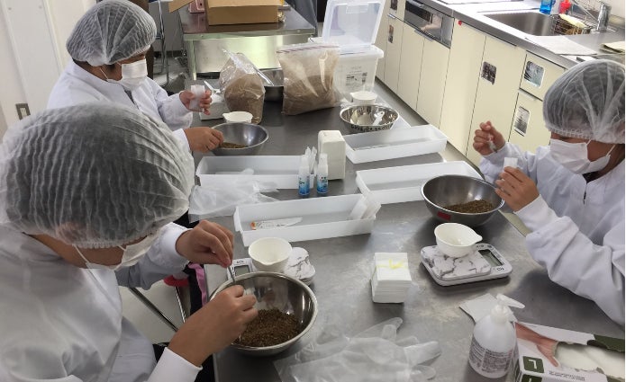 ごぼう商品のベースはプロジェクトで作り上げましたが、地域が活性化する仕組みを作り上げていくために、商品化の梱包作業などは市内のNPO法人就労ネットワーク滋賀のしあわせ作業所さんと連携しお任せすることにしました。